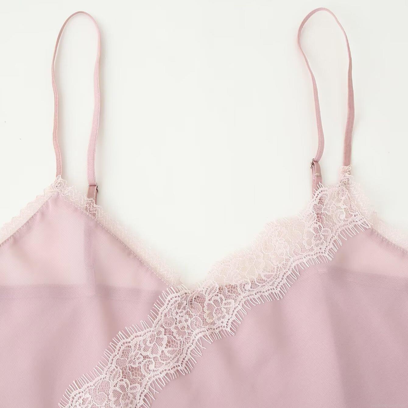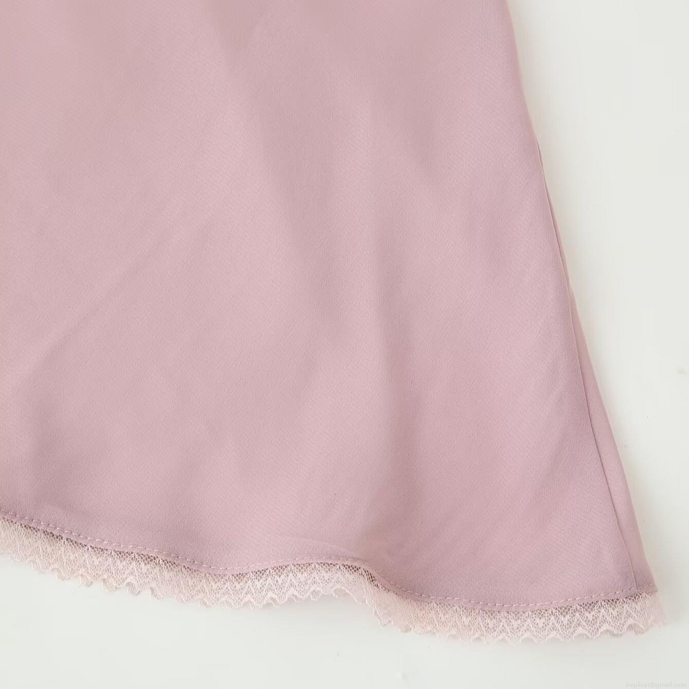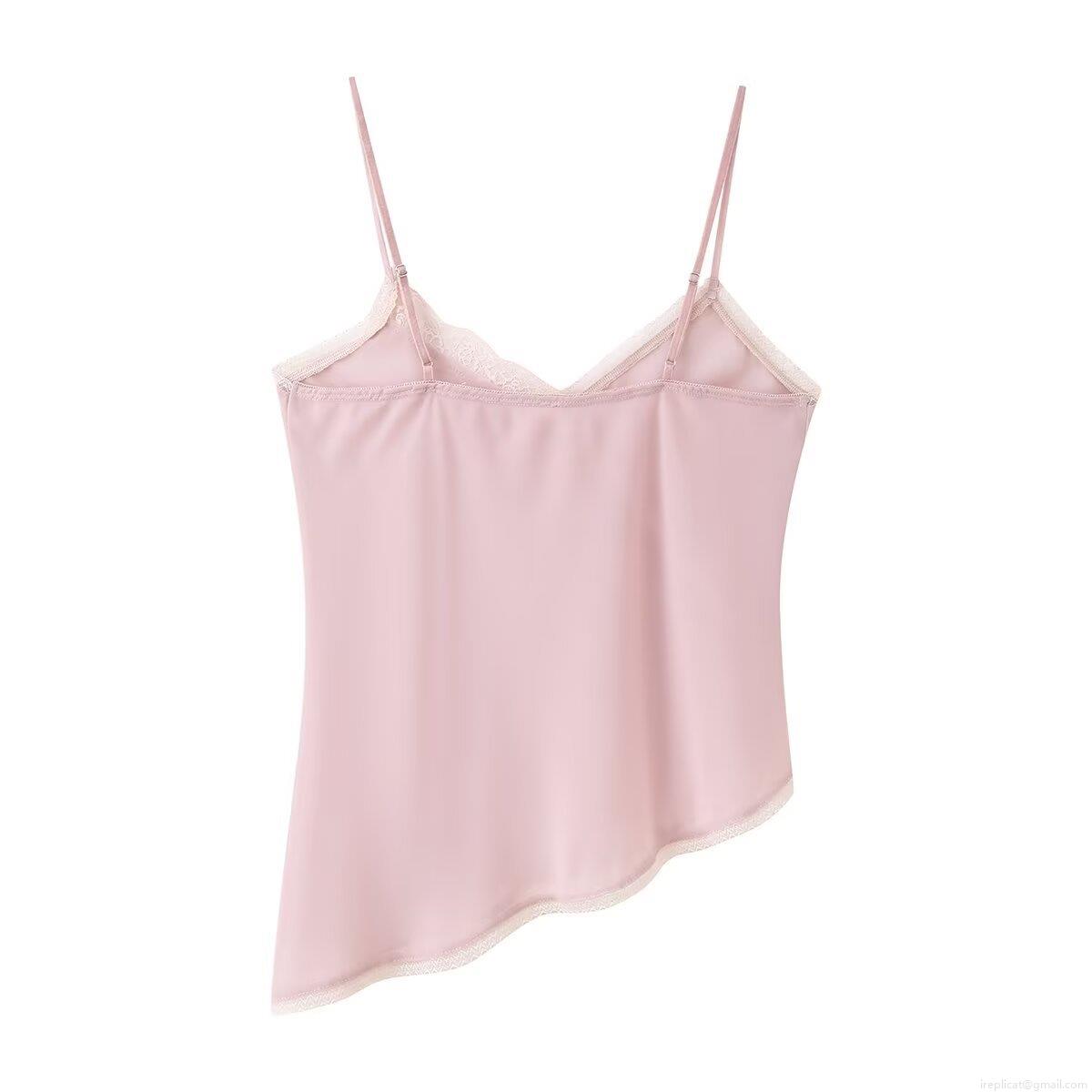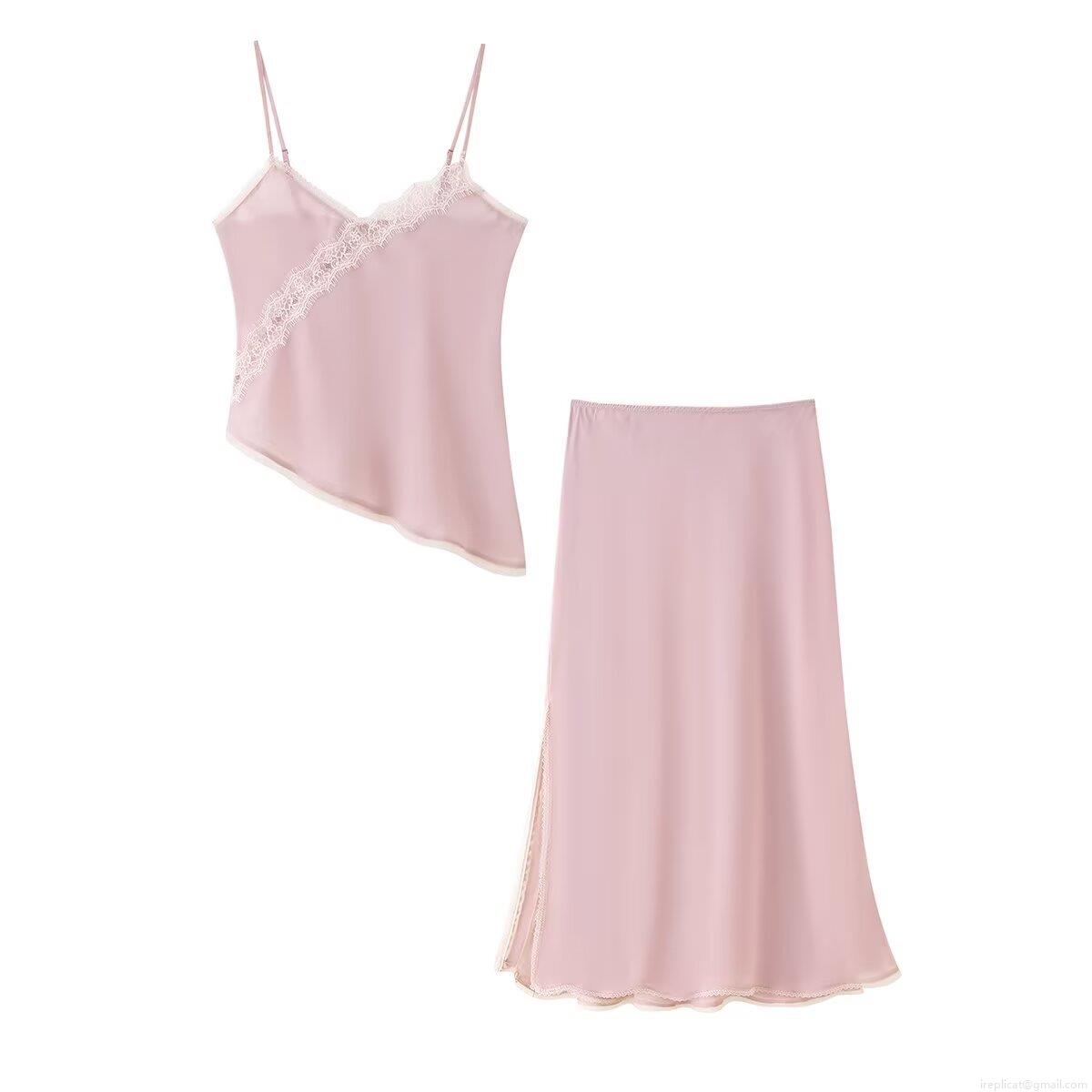 • Women Sexy Lace Trim Satin Camisole Top And Midi Skirt Set Asymmetrical Hem Side Slit Two Piece Outfits Loungewear Party Nightwear