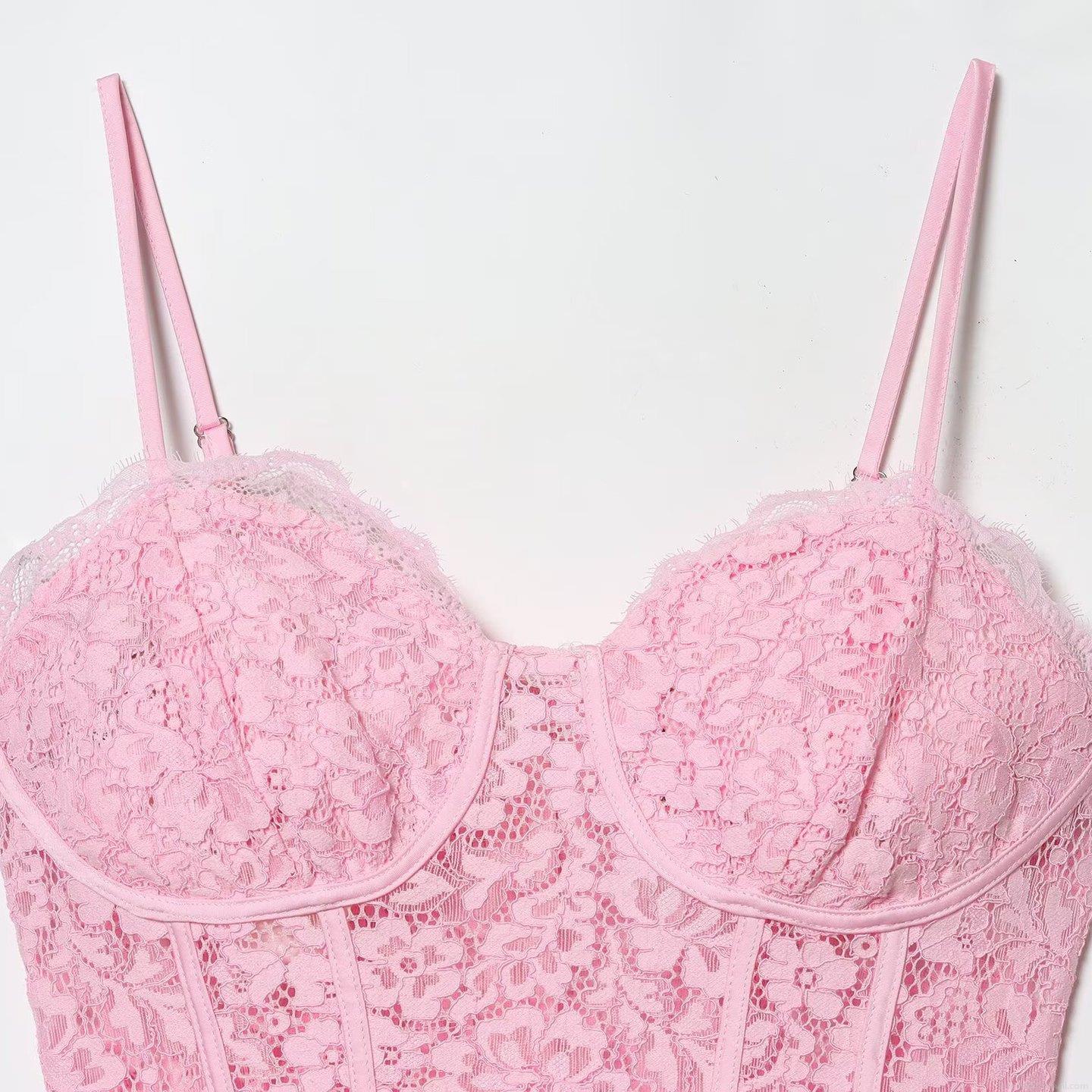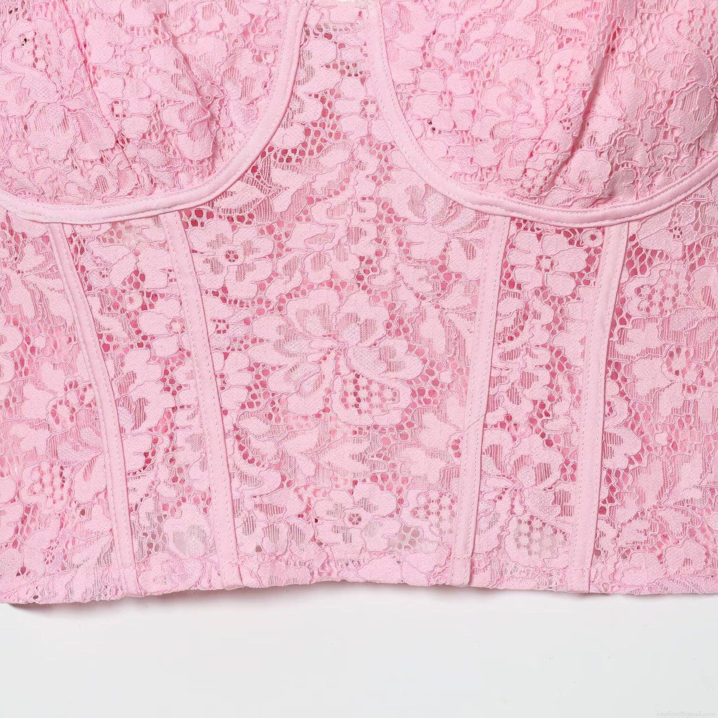 • Women Sexy Pink Lace Corset Camisole Top And Satin A-Line Skirt Two Piece Set Y2K Vacation Party Outfit For Ladies