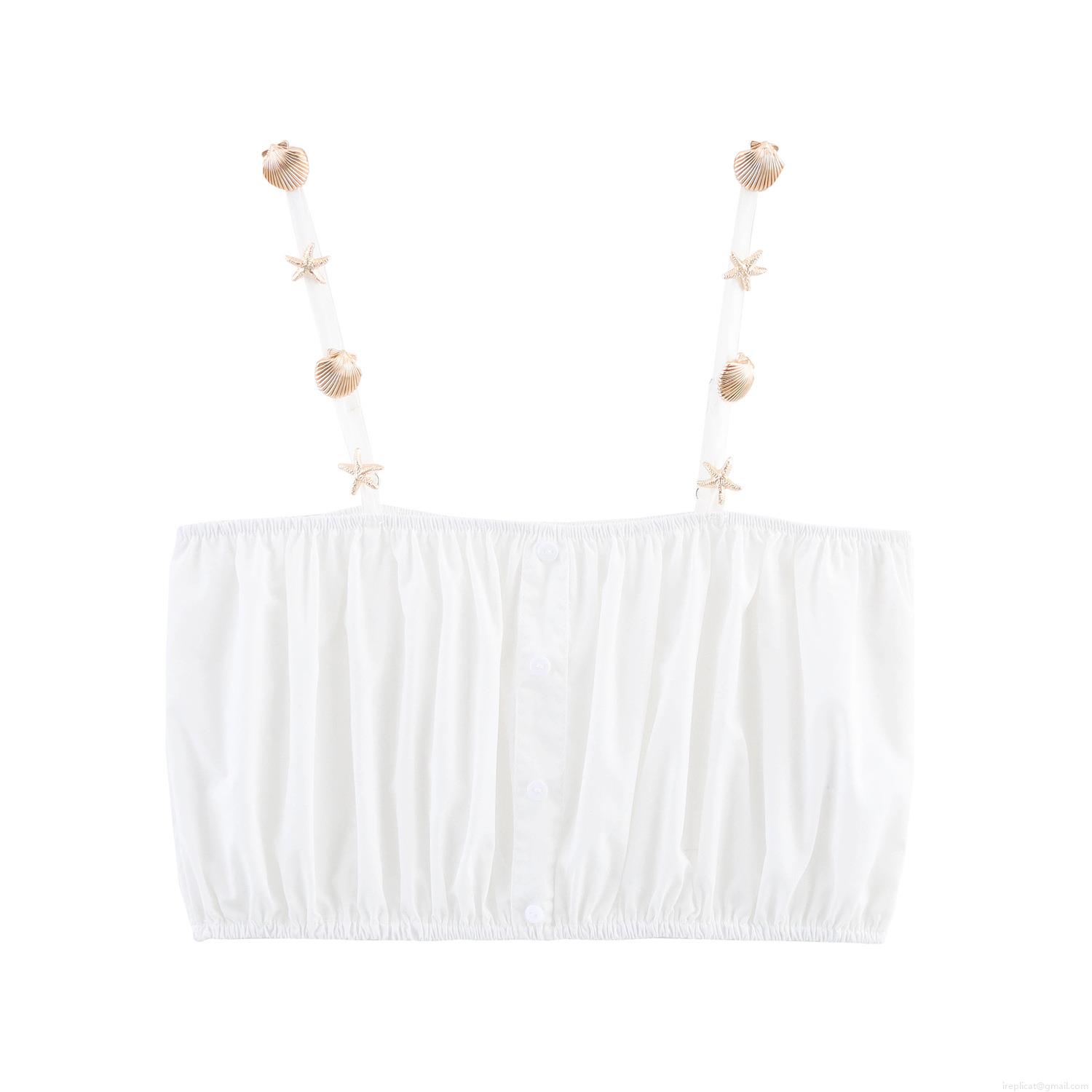 Shell, Solid Color, Starfish, Pleats, Ruffles, Navel Exposed, Cake Skirt, Metal Buckle