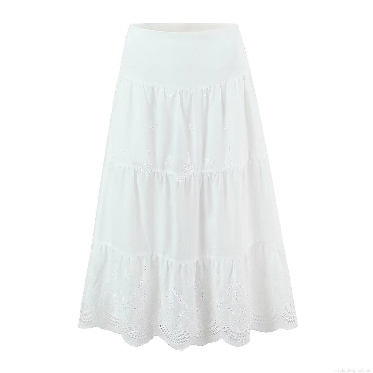Solid Color, Pleats, Ruffles, Openwork Embroidery, Cake Skirt, Off-shoulder