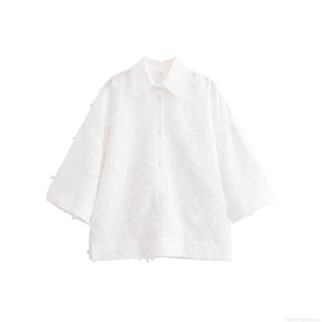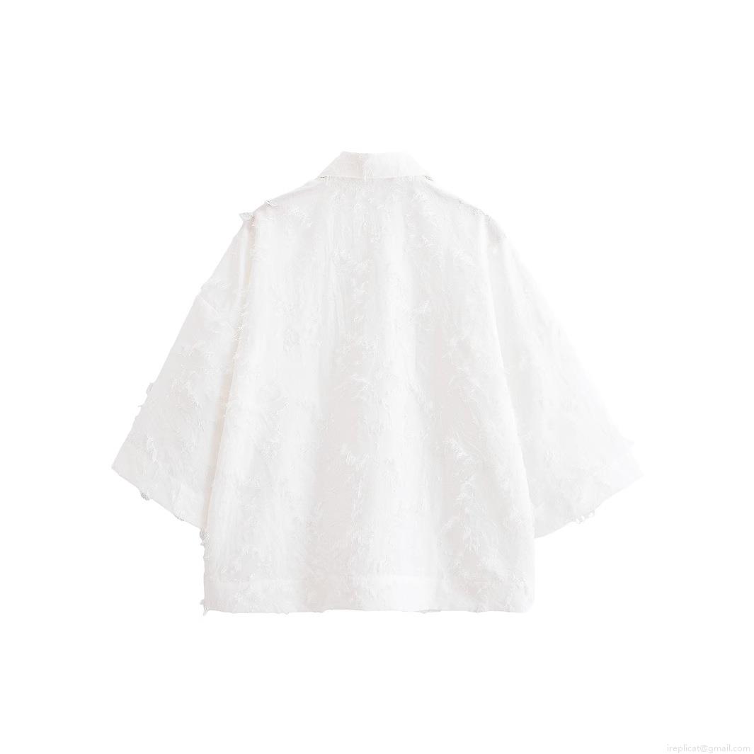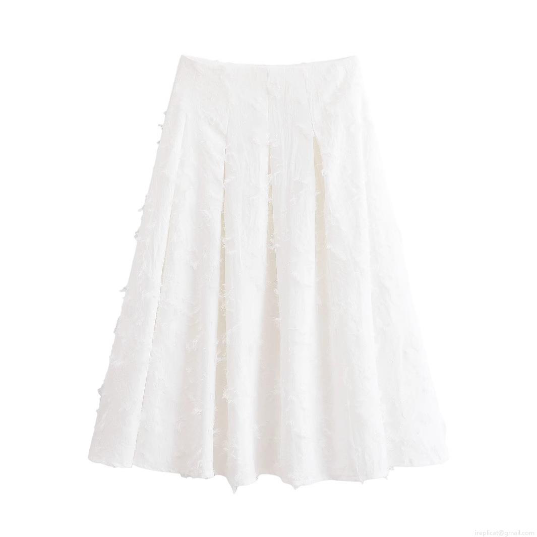 • Women Summer White Fringe Tassel Shirt And High Waist Midi Skirt 2 Piece Set Elegant Textured Short Sleeve Top And A-Line Skirt Outfits