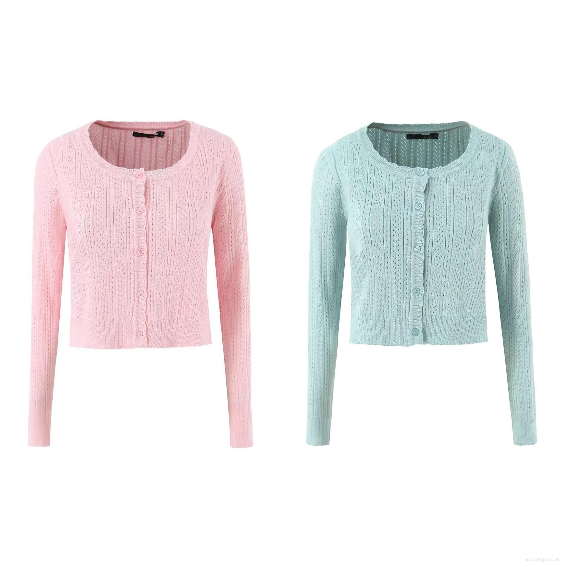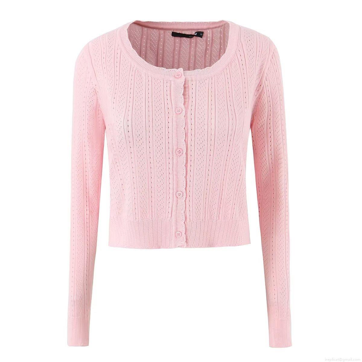 Solid Color, Single-breasted, Hollow-out Technique, Openwork Pattern, Knitted Texture