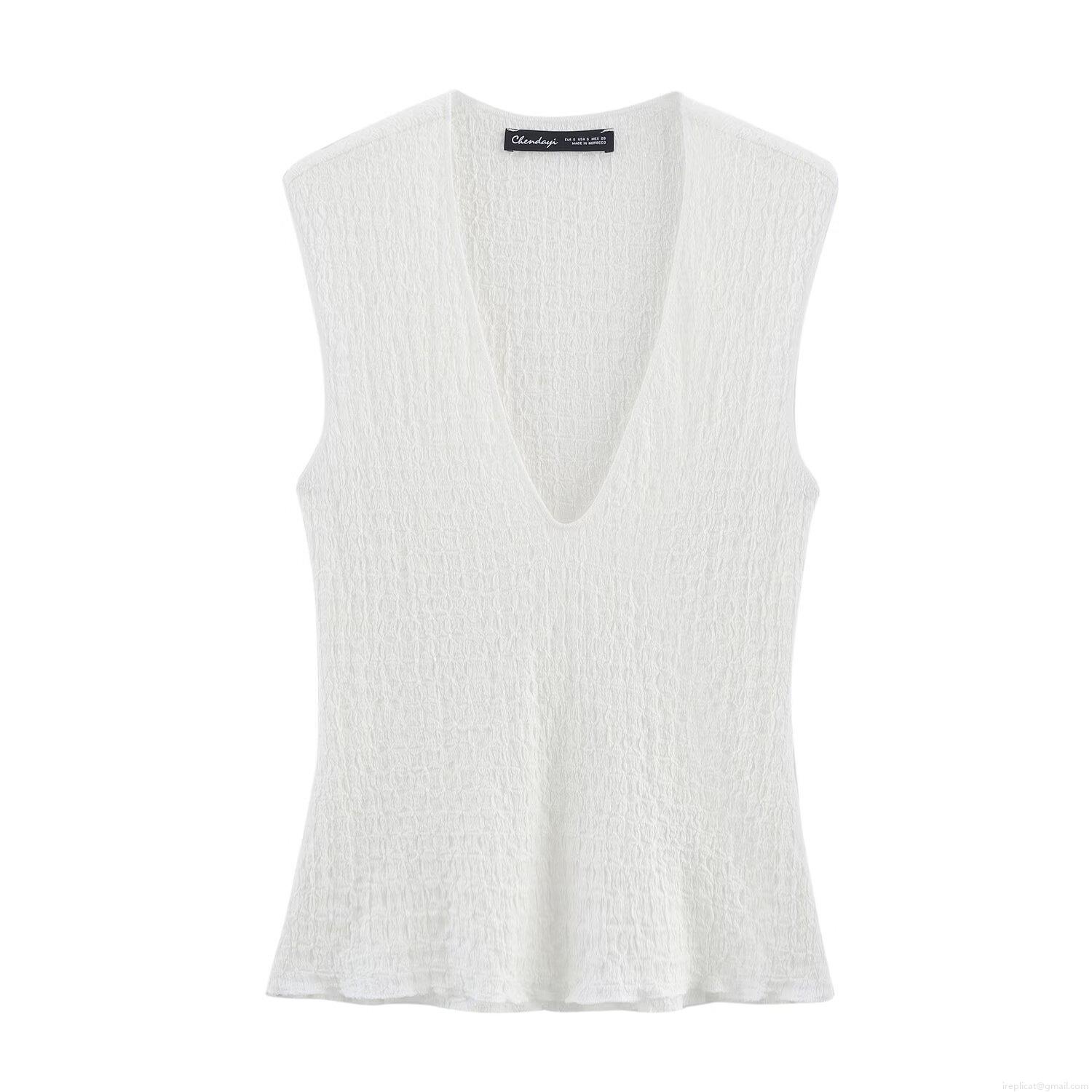 Solid Color, Pleats, V-neck, Seersucker, Lace, Wrinkled Texture