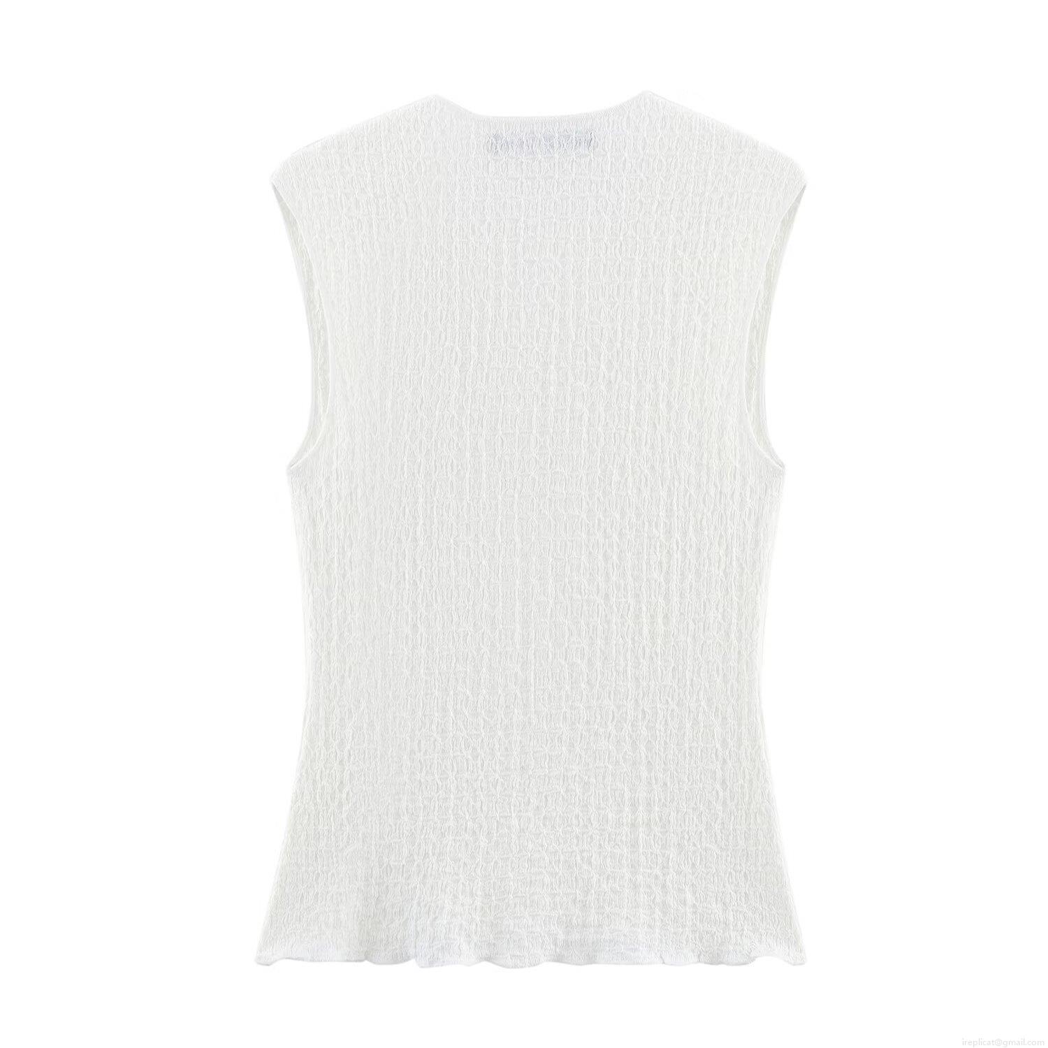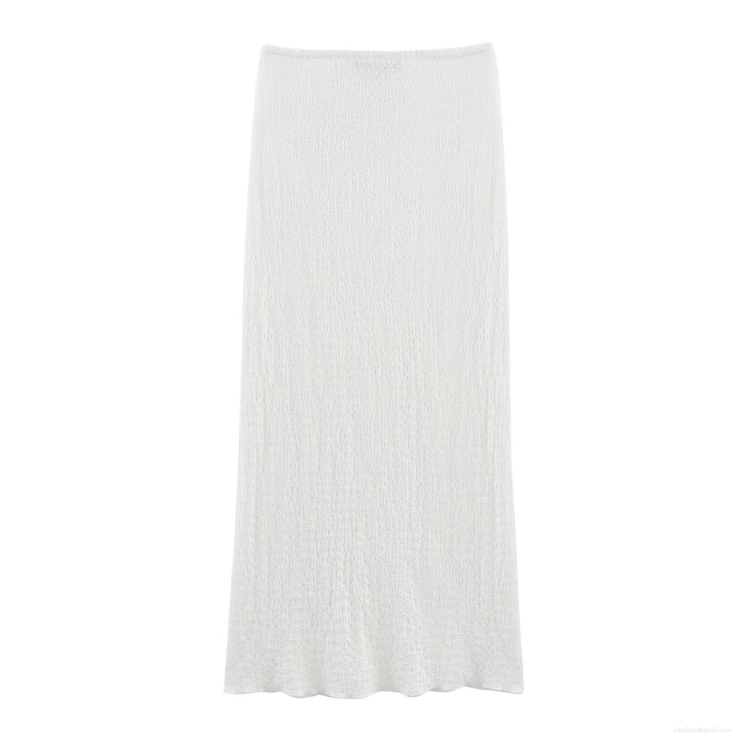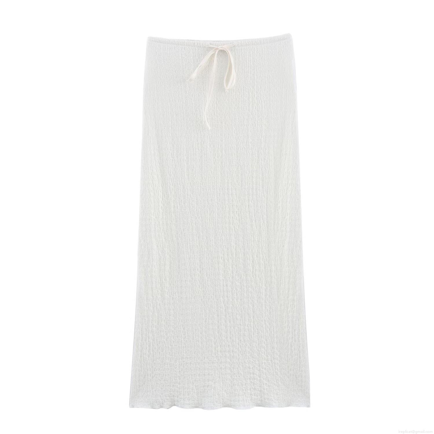 • Women White V Neck Sleeveless Top And Long Skirt Set Crinkle Texture Cotton Blend Two Piece Summer Outfits For Streetwear Vacation