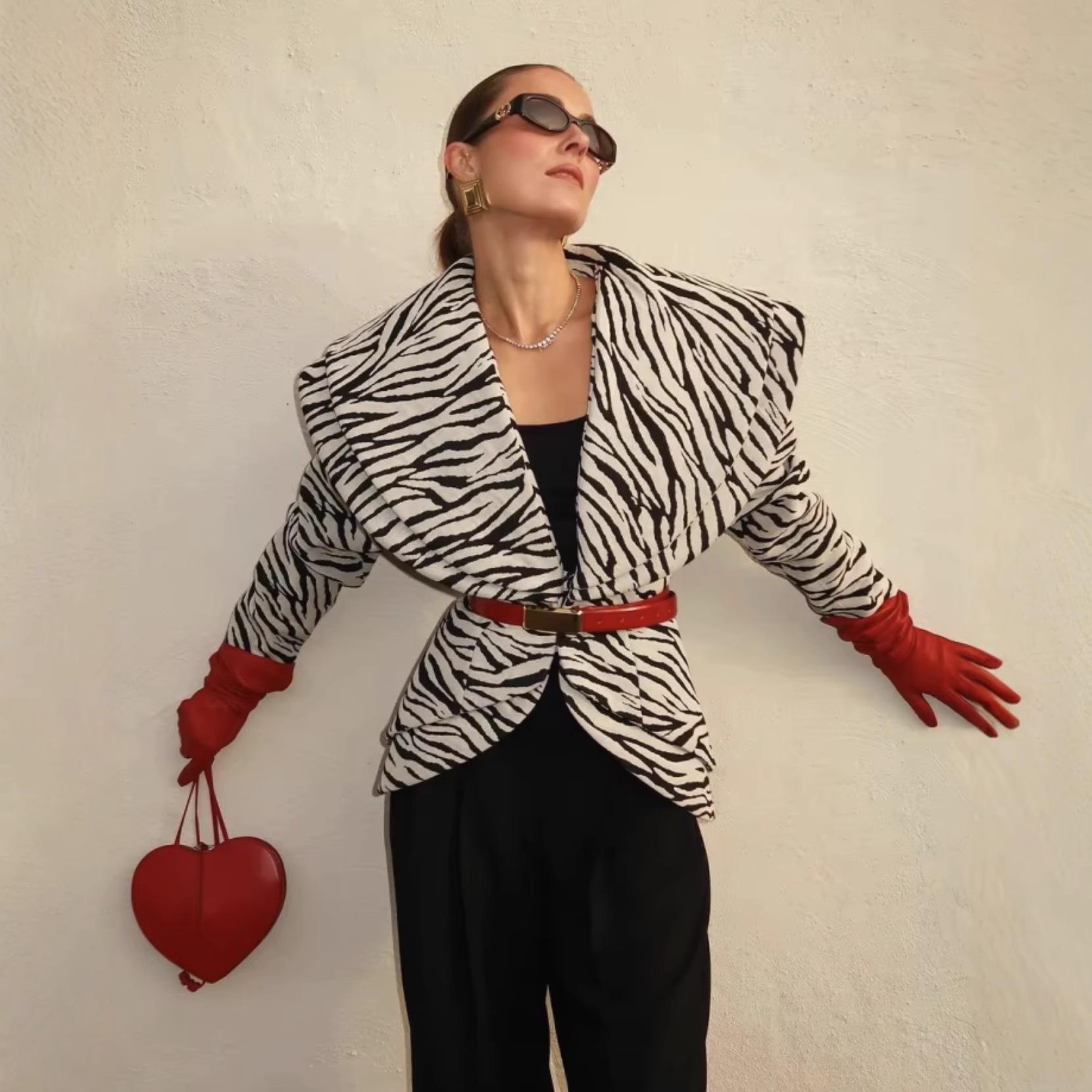 Zebra, Animal Print, Large Lapel, Silhouette Design