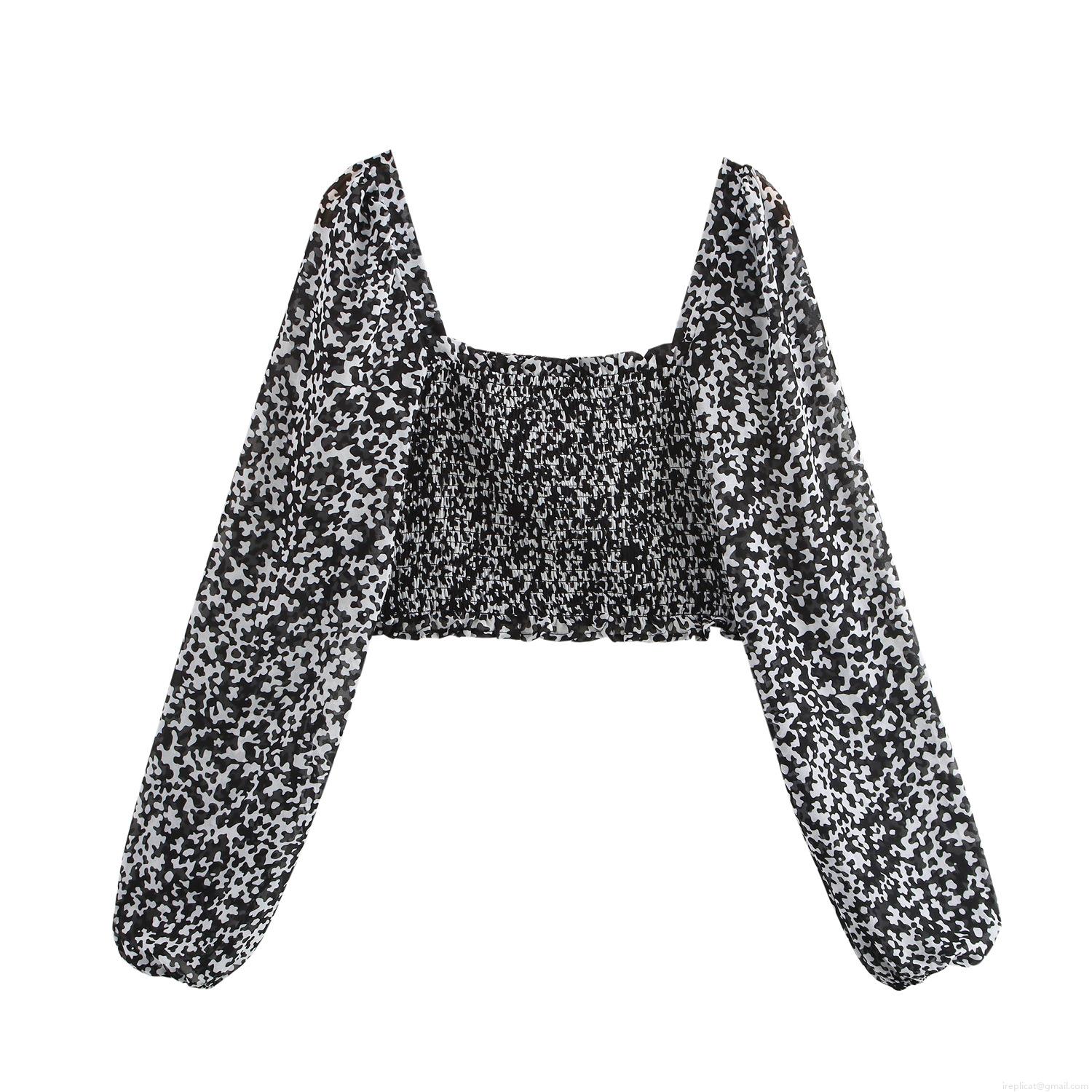Digital, Floral Pattern, Ruffles, Puff Sleeves, Square Collar, Abstract Texture, Bundling Process