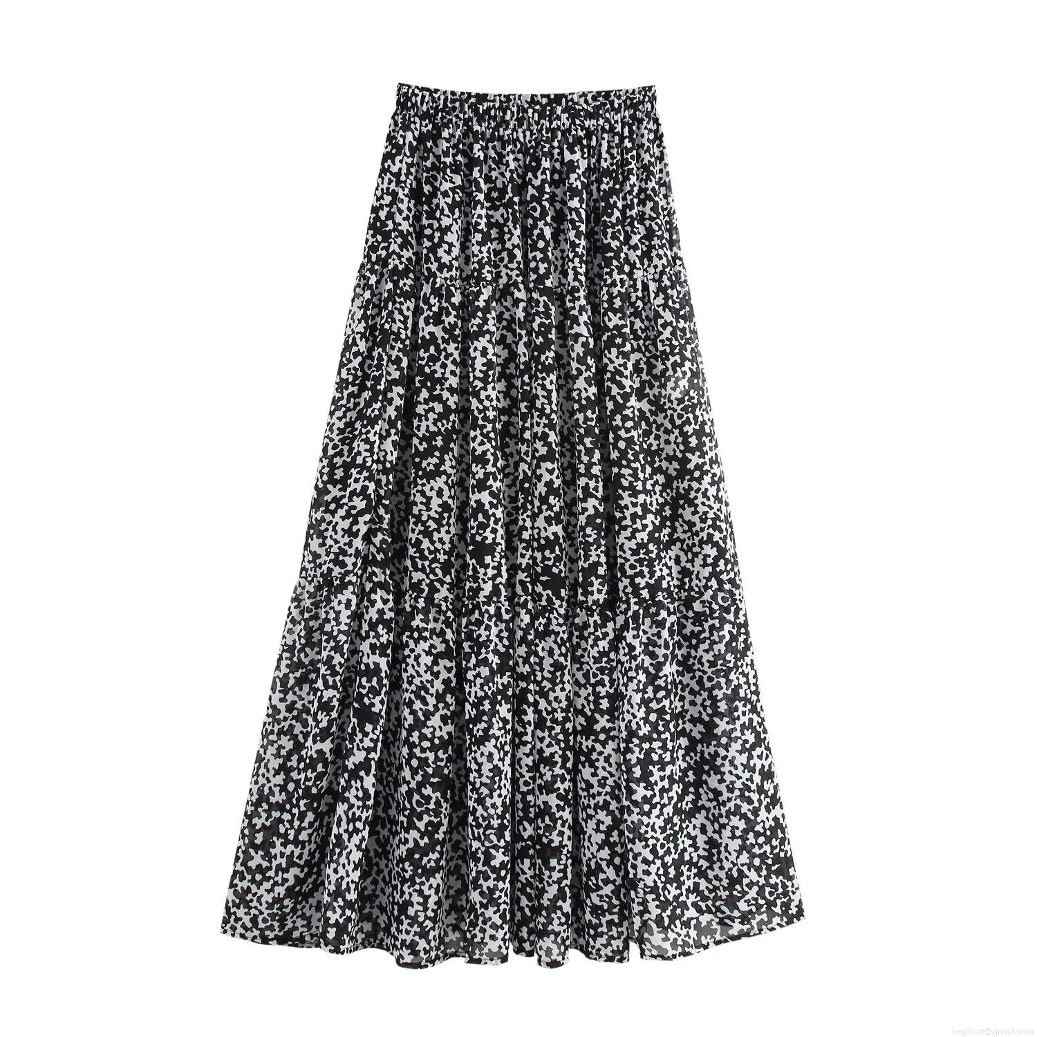 • Women's 2 Piece Chiffon Skirt Set Floral Print Smocked Square Neck Cropped Top And High Waist Long A-Line Skirt Boho Vintage Long Sleeve Outfit