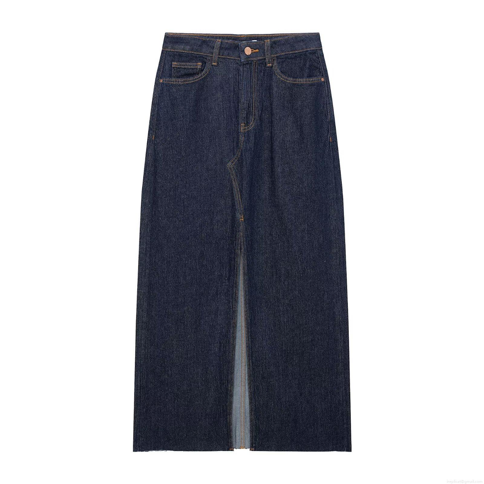 • Women's 2 Piece Denim Look Skirt Set Sleeveless Short Vest And High Waist Front Slit Maxi Skirt Casual Streetwear Set For Spring Summer Dark Blue
