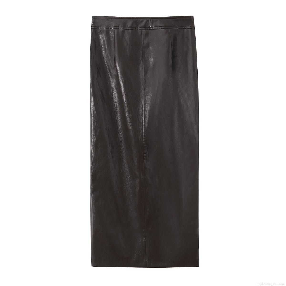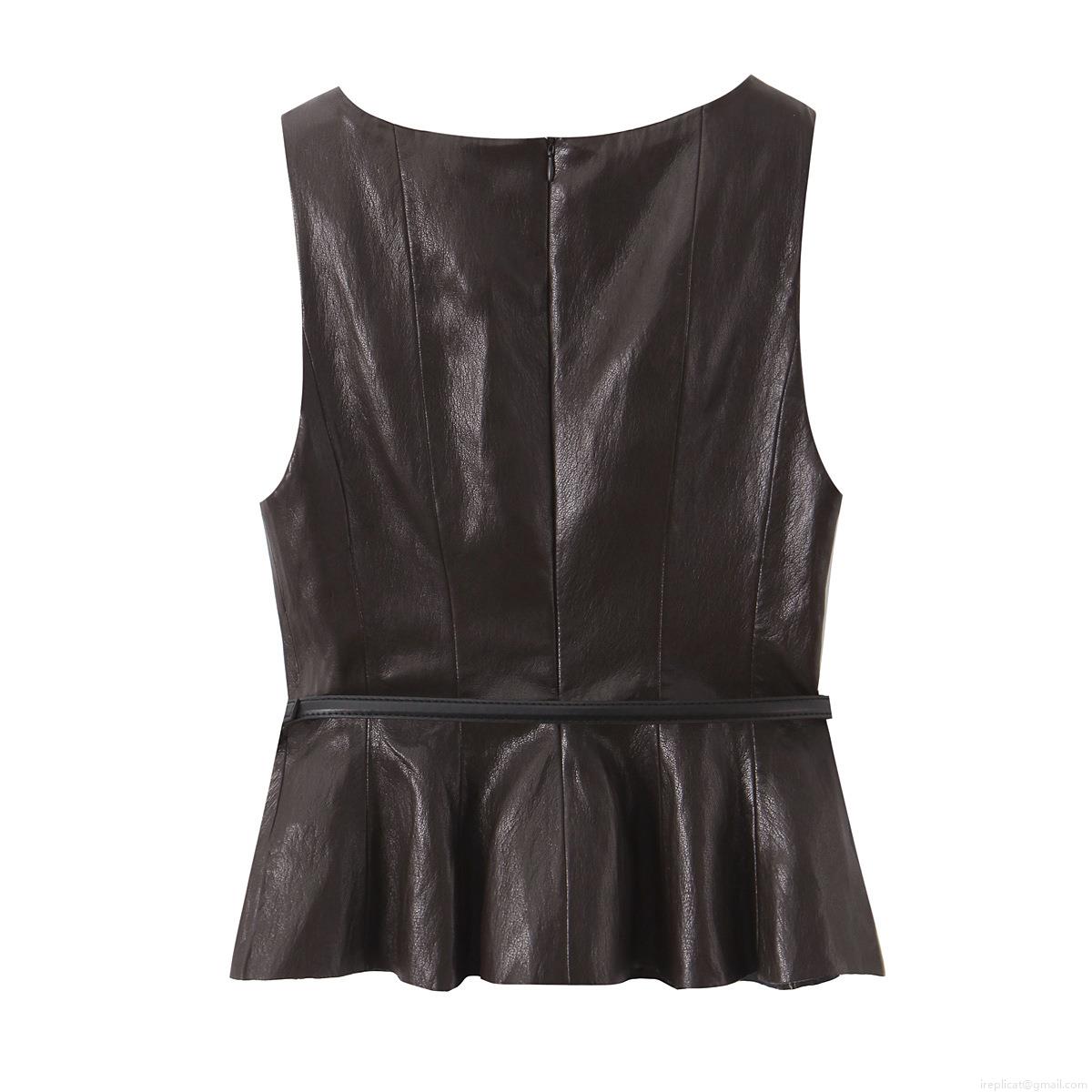 • Women's 2 Piece Faux Leather Peplum Skirt Set Sleeveless Waist Belted Top And Front Split Midi Skirt Elegant Dark Brown Streetwear Party Outfits