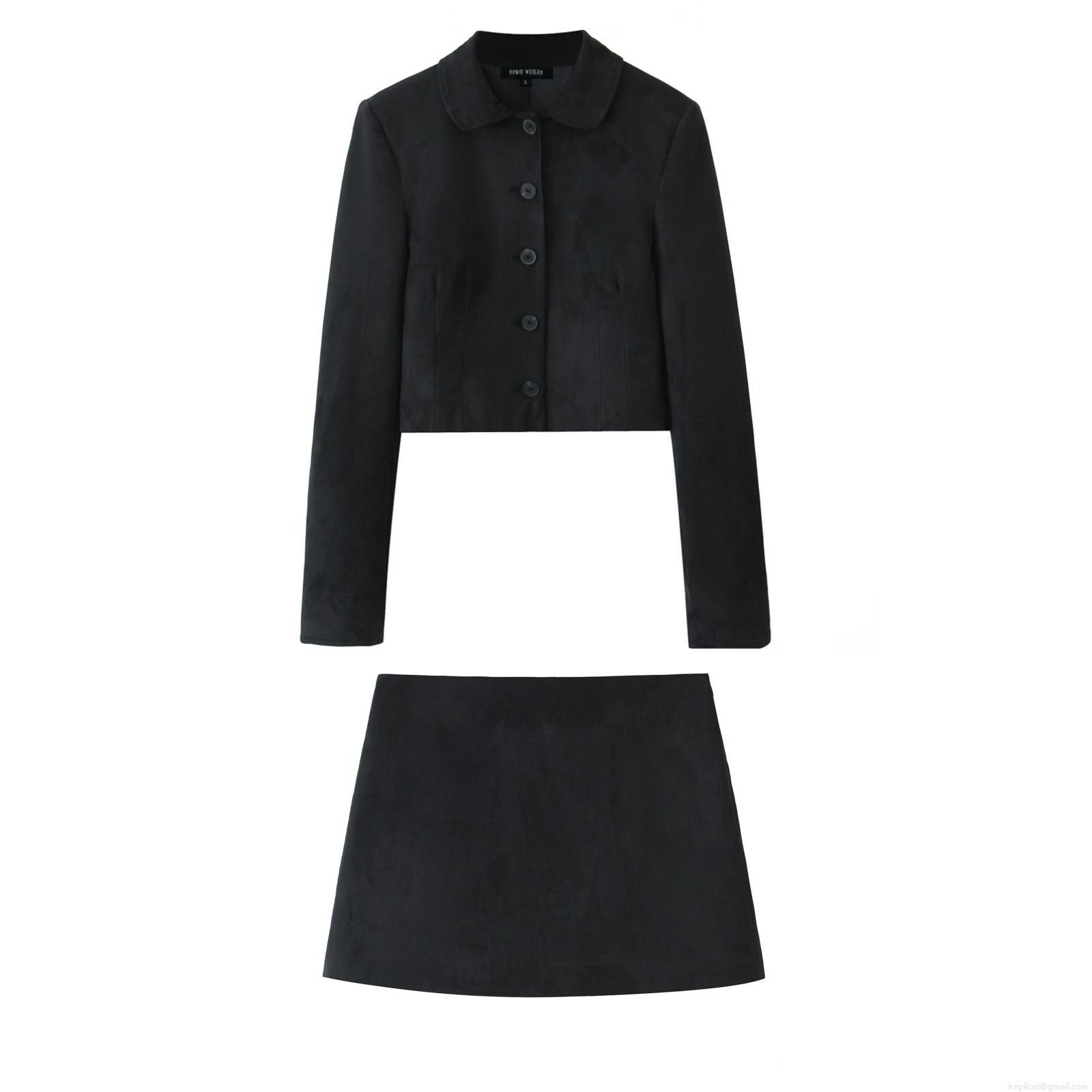 • Women's 2 Piece Faux Suede Skirt Set Solid Black Single Breasted Cropped Jacket and High Waist A-Line Mini Skirt Streetwear Outfits For Casual Party