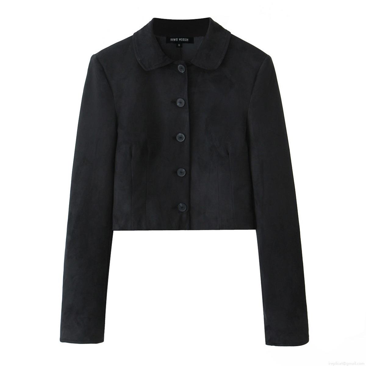 Women's 2 Piece Faux Suede Skirt Set Solid Black Single Breasted Cropped Jacket and High Waist A-Line Mini Skirt Streetwear Outfits For Casual Party