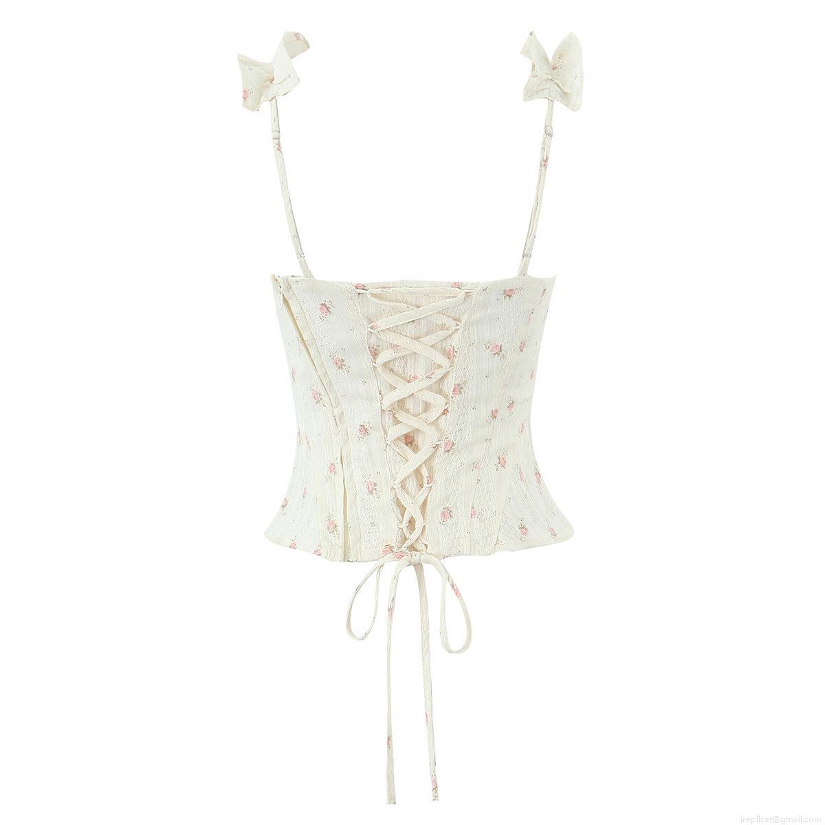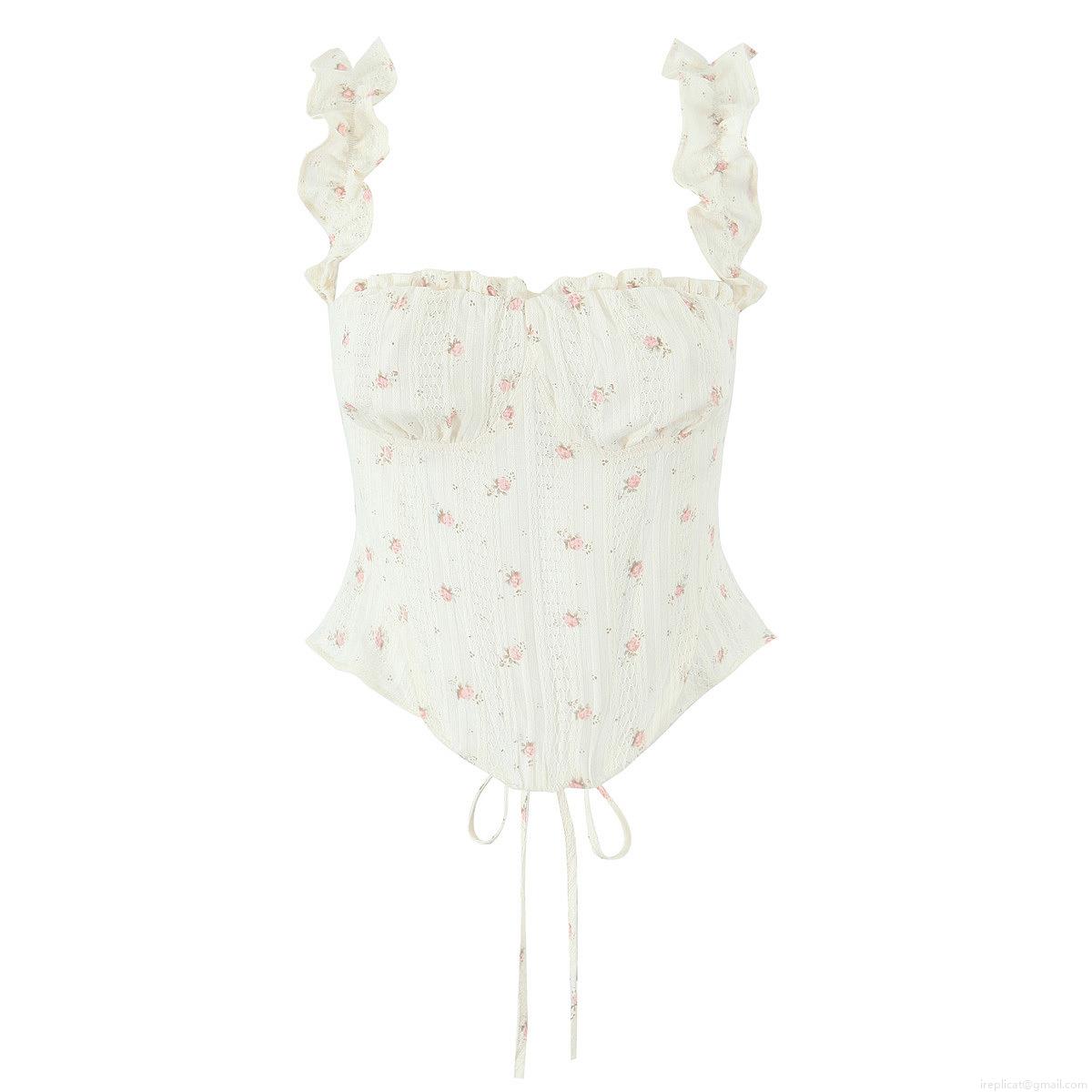 Small Floral, Ruffles, Rose, Fishbone Waist Shaping, Back Strap, Cake Skirt, Bow Strap