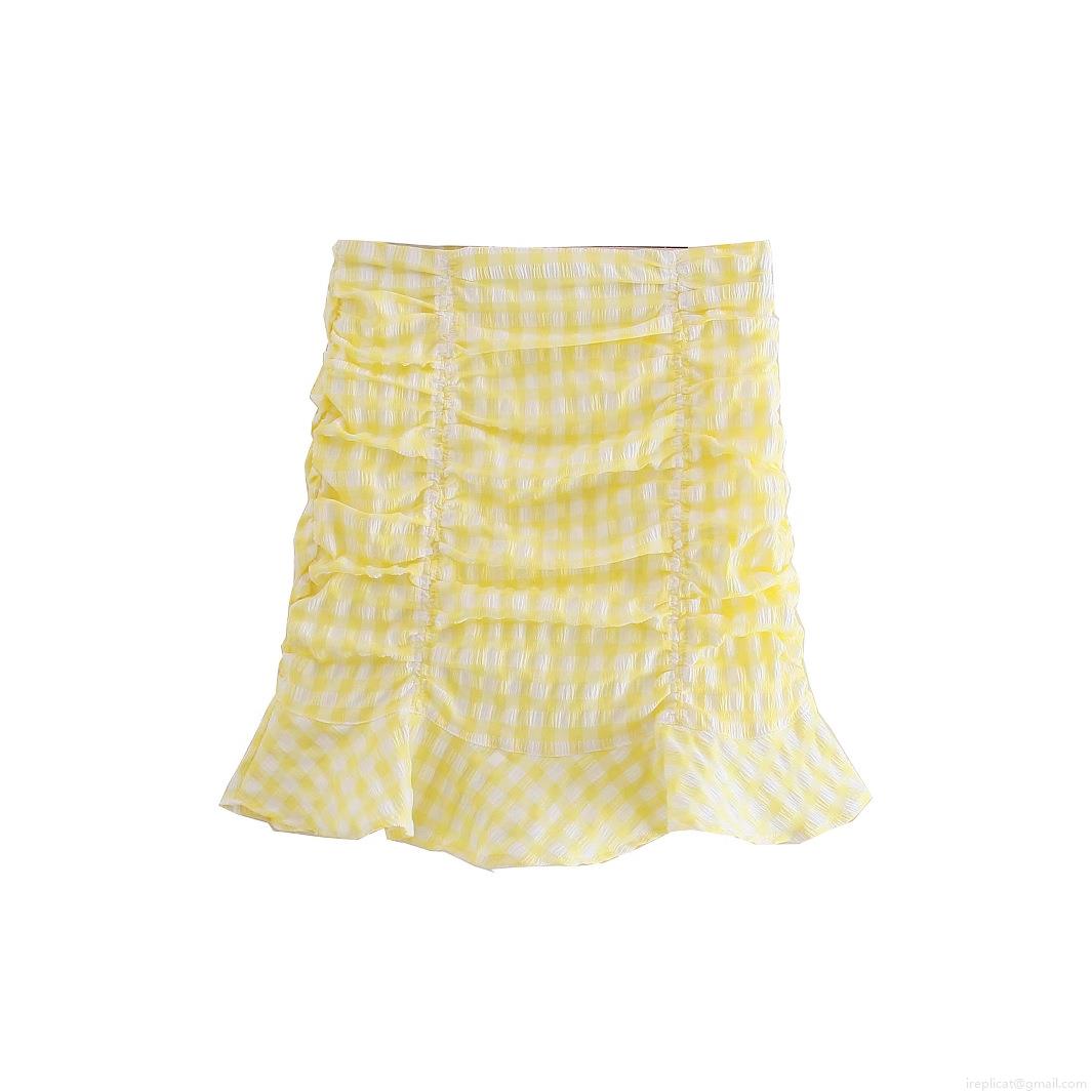 • Women's 2 Piece Gingham Skirt Set Sexy One Shoulder Puff Long Sleeve Crop Top And Ruched Ruffle Mini Skirt Outfits Streetwear