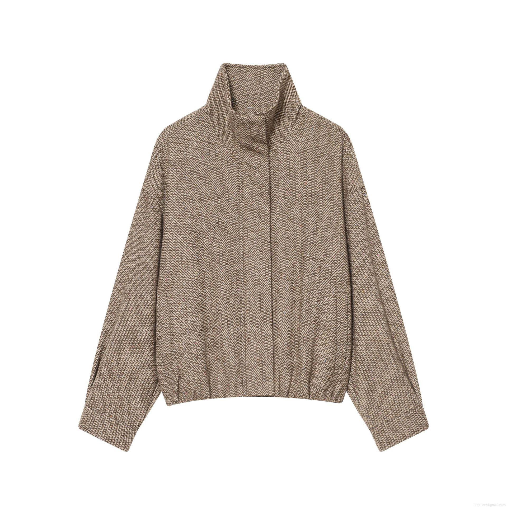 • Women's 2 Piece Herringbone Tweed Set Fashion Stand Collar Long Sleeve Jacket and Ruffle Layered Skort Set Streetwear Western Style Ladies Autumn Outfits