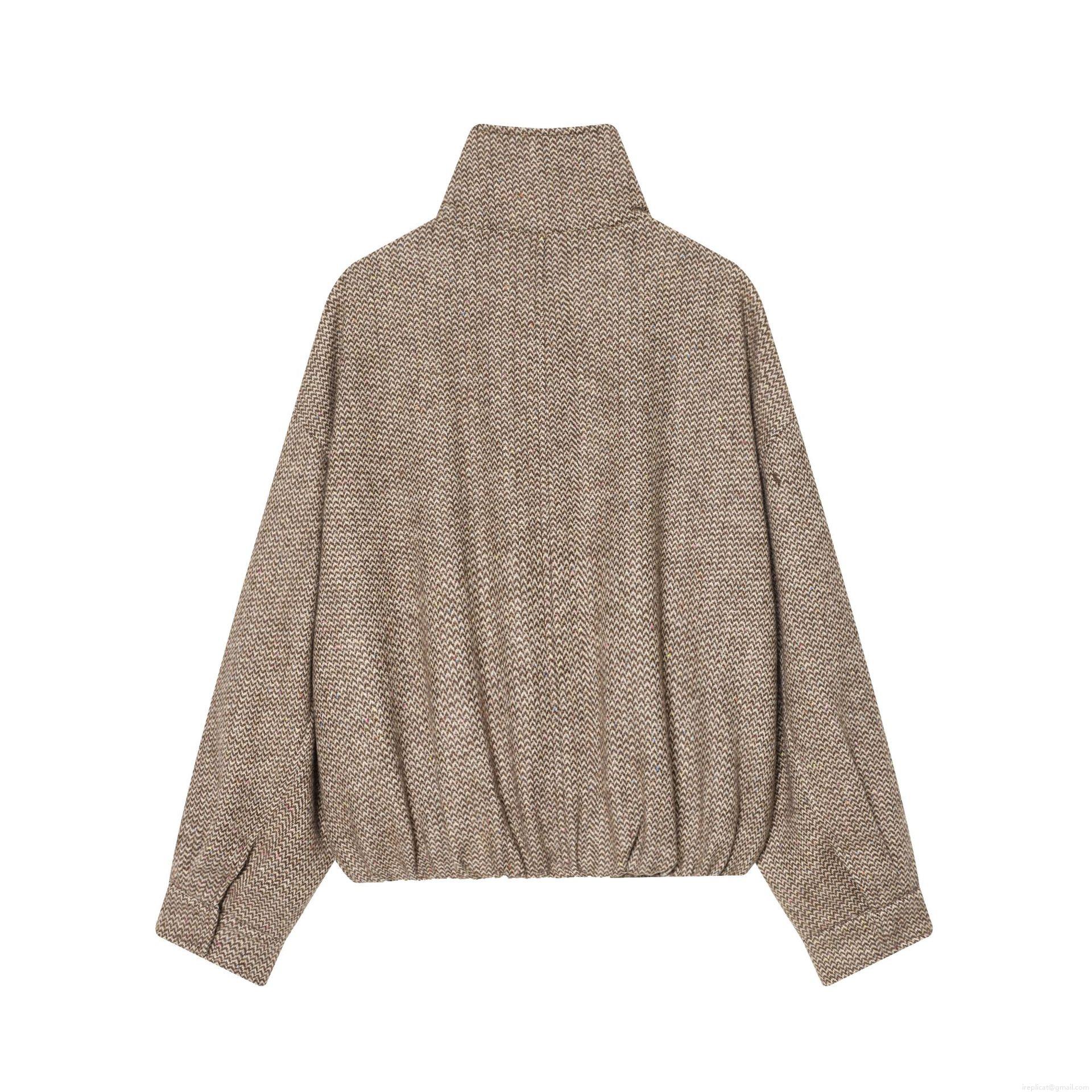 Women's 2 Piece Herringbone Tweed Set Fashion Stand Collar Long Sleeve Jacket and Ruffle Layered Skort Set Streetwear Western Style Ladies Autumn Outfits