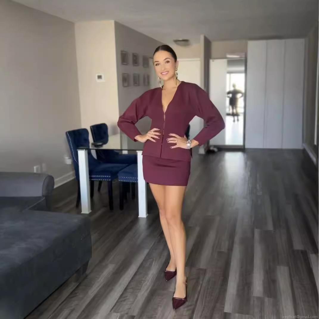 • Women's 2 Piece Knit Outfits Sexy V-Neck Button Up Cardigan Long Sleeve Top and Mini Bodycon Skirt Set Fall Winter Casual Skirt Suits for Women