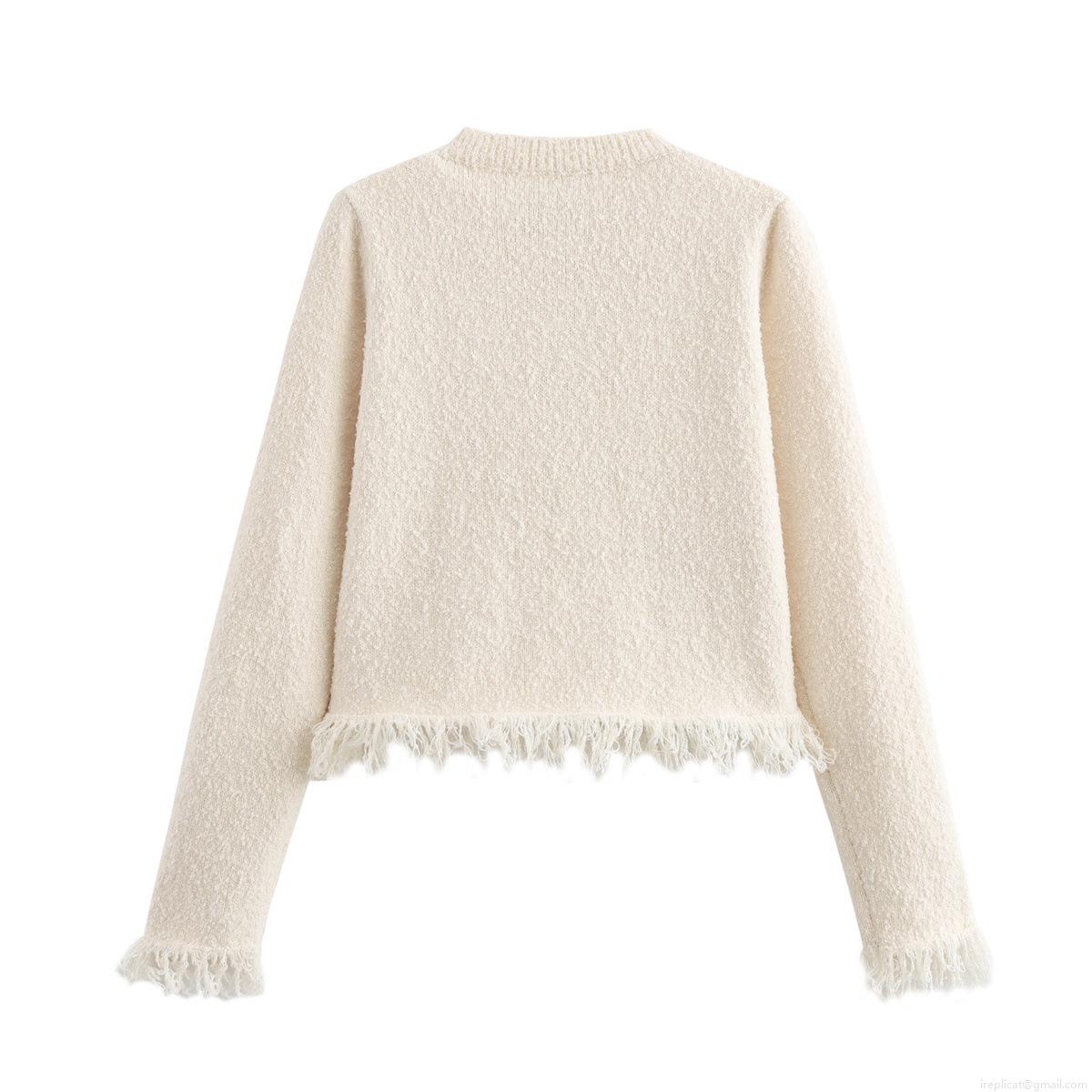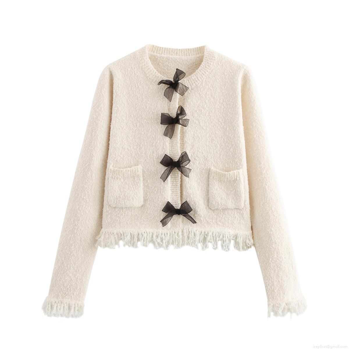 Women's 2 Piece Knit Skirt Set Cream Long Sleeve Round Neck Cardigan With Black Bow Knots And Fringe Mini Skirt Casual Chic Outfit For Women