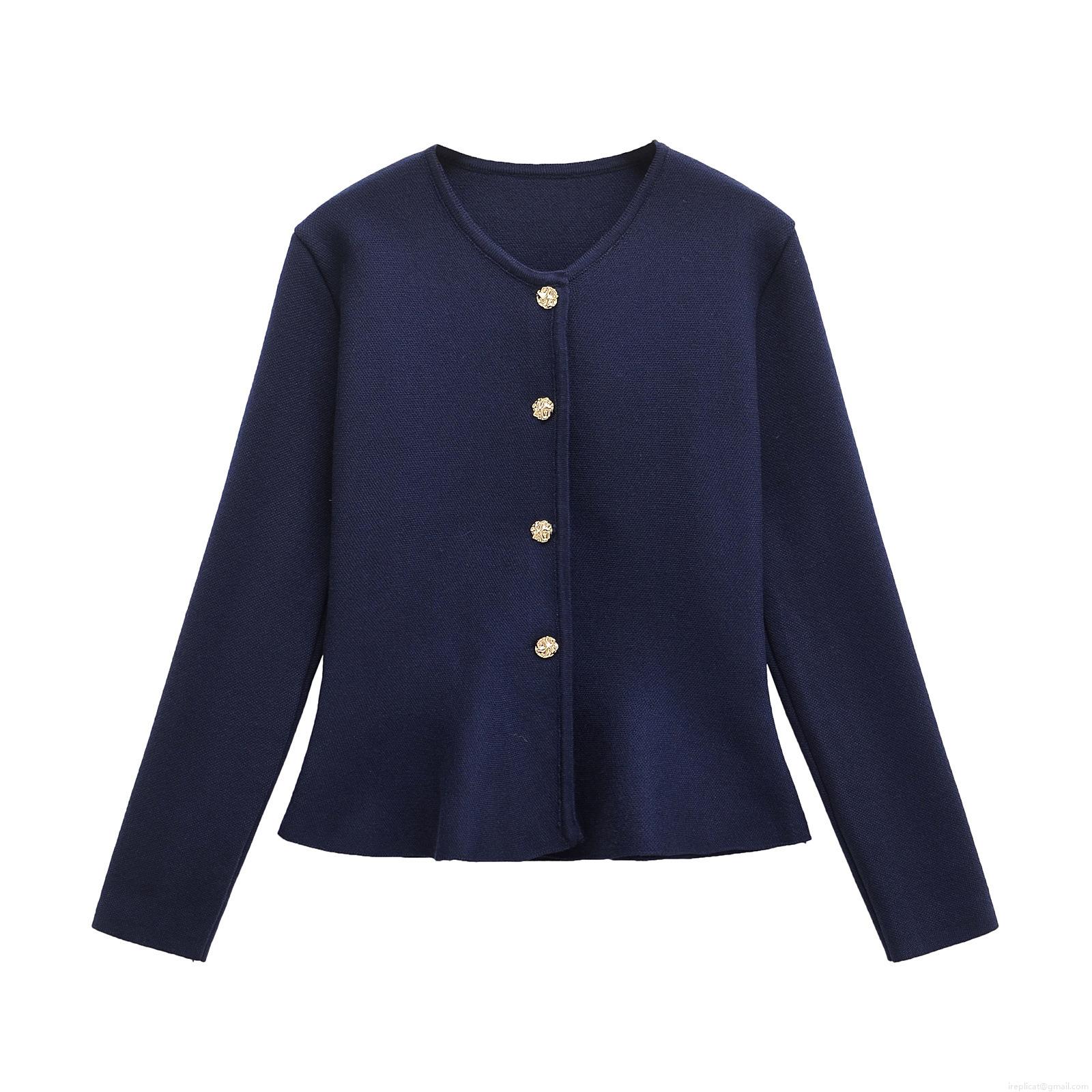 • Women's 2 Piece Knit Skirt Set Elegant Round Neck Long Sleeve Cardigan With Gold Buttons And High Waist A-Line Mini Skirt Casual Streetwear Outfit