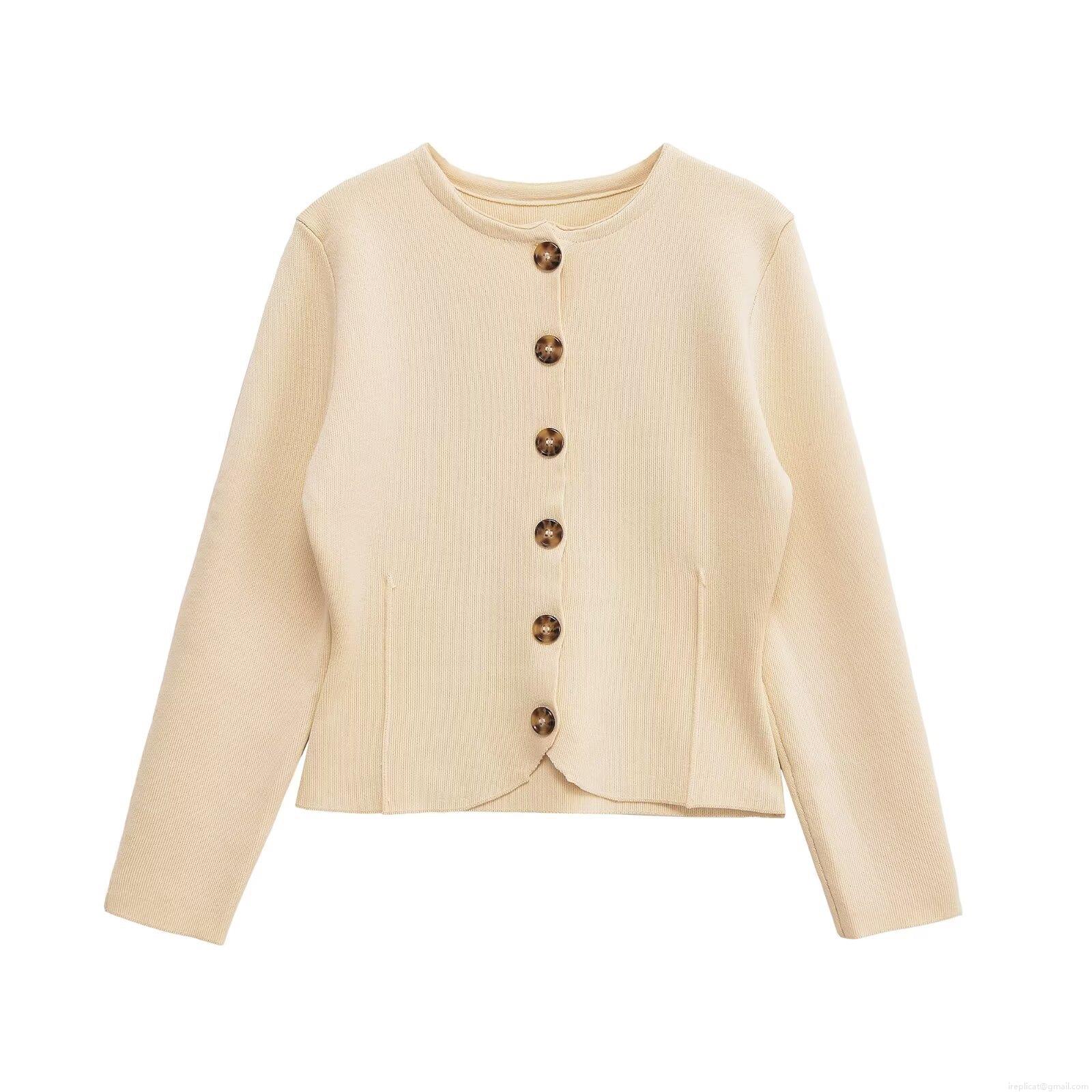 Solid Color, Pinstripes, Button Decoration, Rough Texture