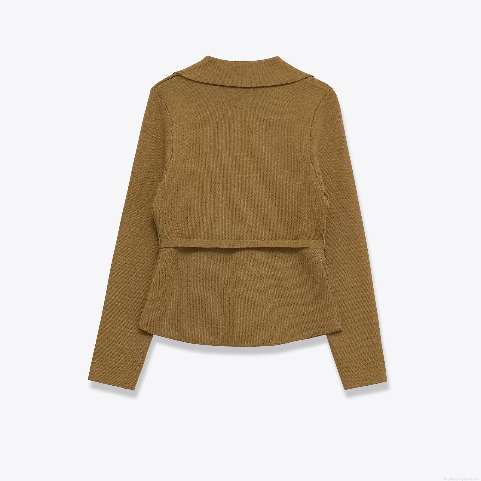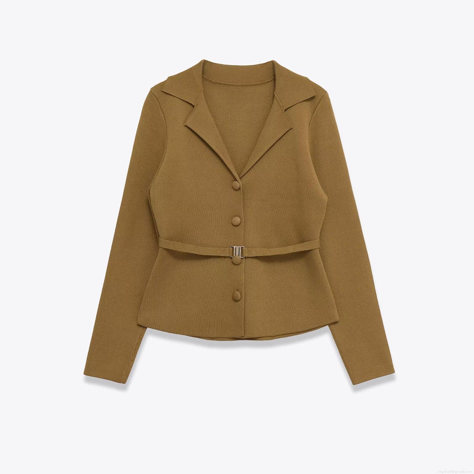 Solid Color, Ribbed Knit, Button Decoration, Metal Buckle Belt, Slit Design