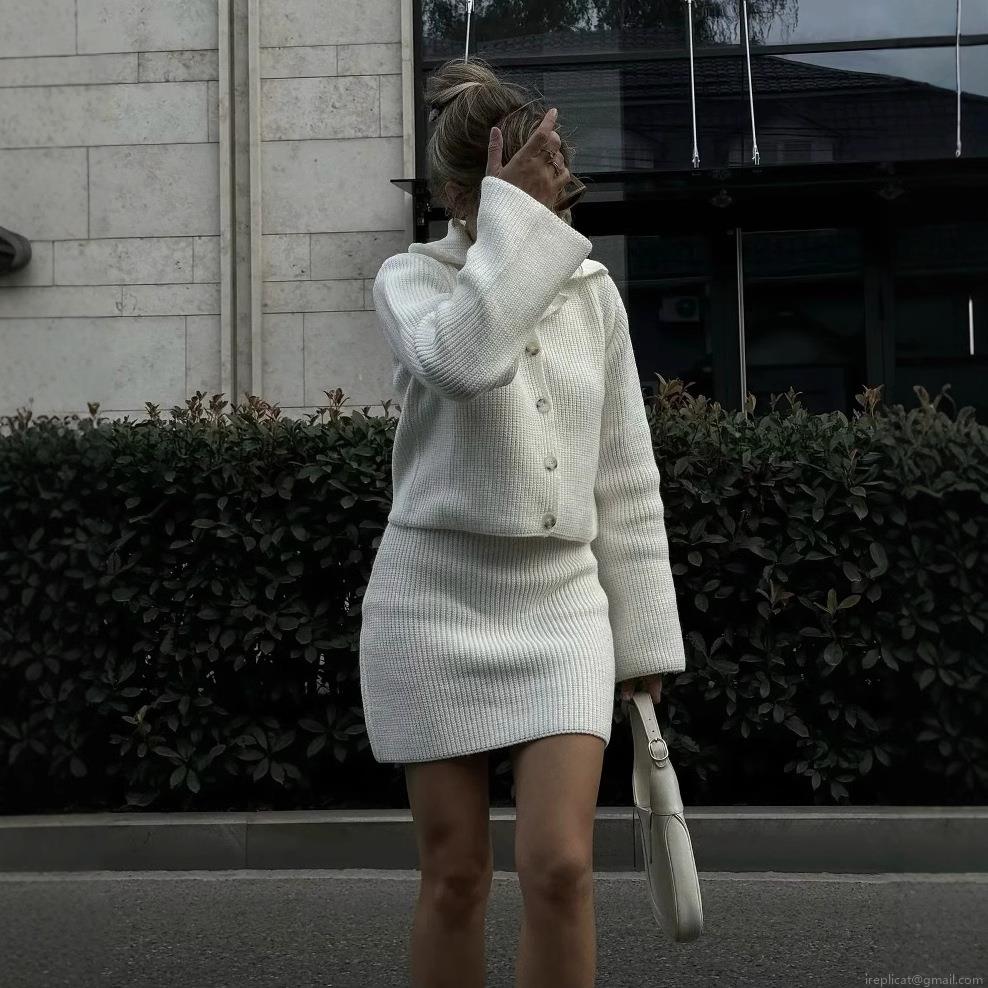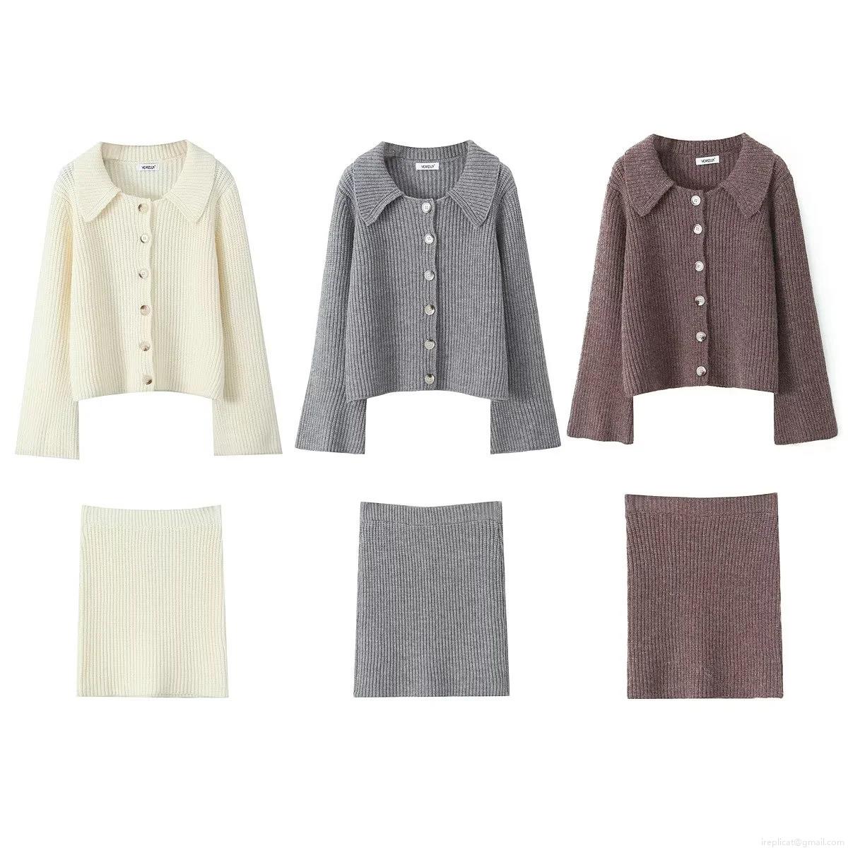 • Women's 2 Piece Knit Skirt Set Turn Down Collar Button Up Cardigan And High Waist Mini Skirt Outfits For Autumn Winter Casual Streetwear