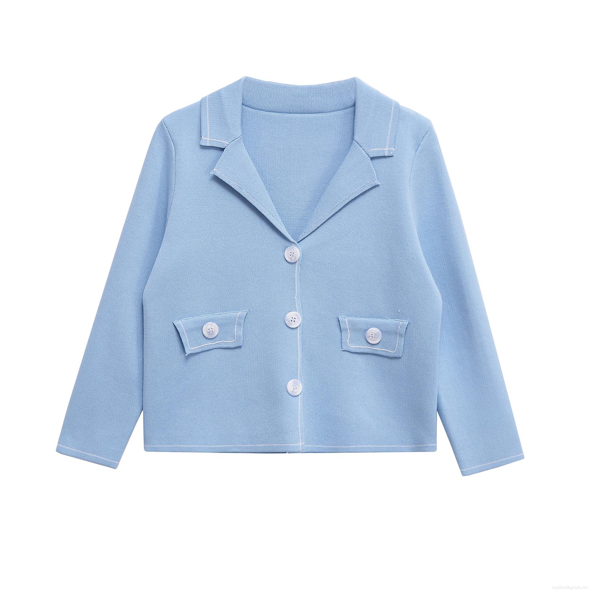 Solid Color, Pocket, Buttons, Ribbed Knit, Rough Texture, Trim