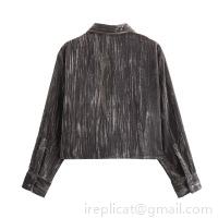 • Women's 2 Piece Outfits Crushed Velvet Long Sleeve Short Jacket Shirt And High Waist Pleated Midi Skirt Set Casual Solid Color Fall Streetwear Clothing