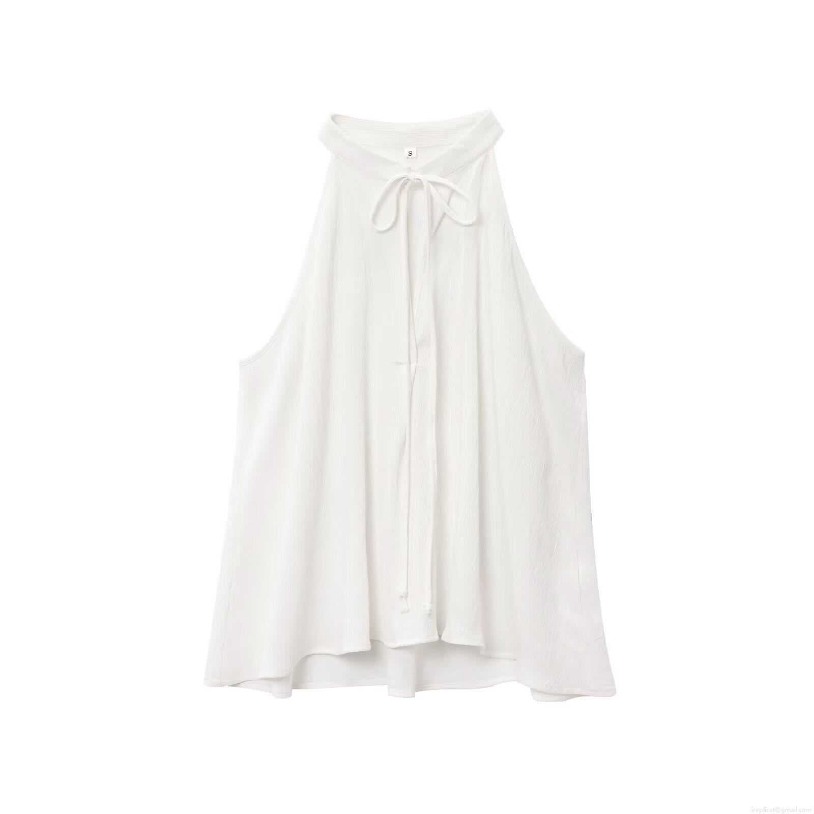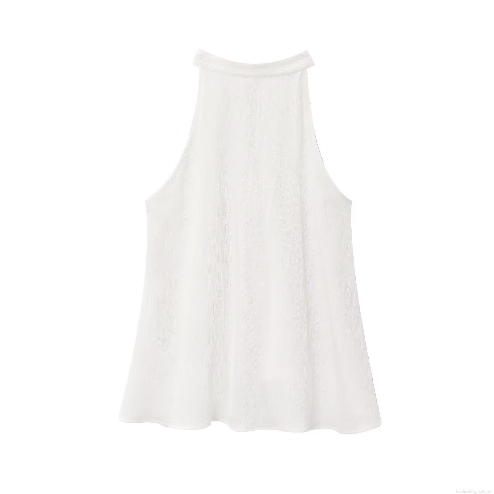 • Women's 2 Piece Skirt Set 100% Cotton Gauze Halter Neck Sleeveless Top And Midi Skirt Summer Casual Solid White Minimalist Outfit For Women