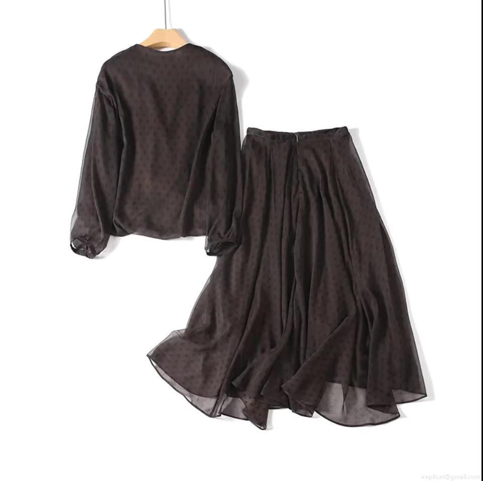 • Women's 2 Piece Skirt Set Long Sleeve V Neck Polka Dot Chiffon Top And Pleated Maxi Skirt Casual Elegant Streetwear Outfit For Ladies