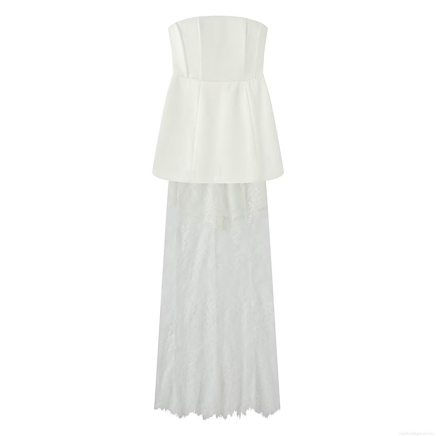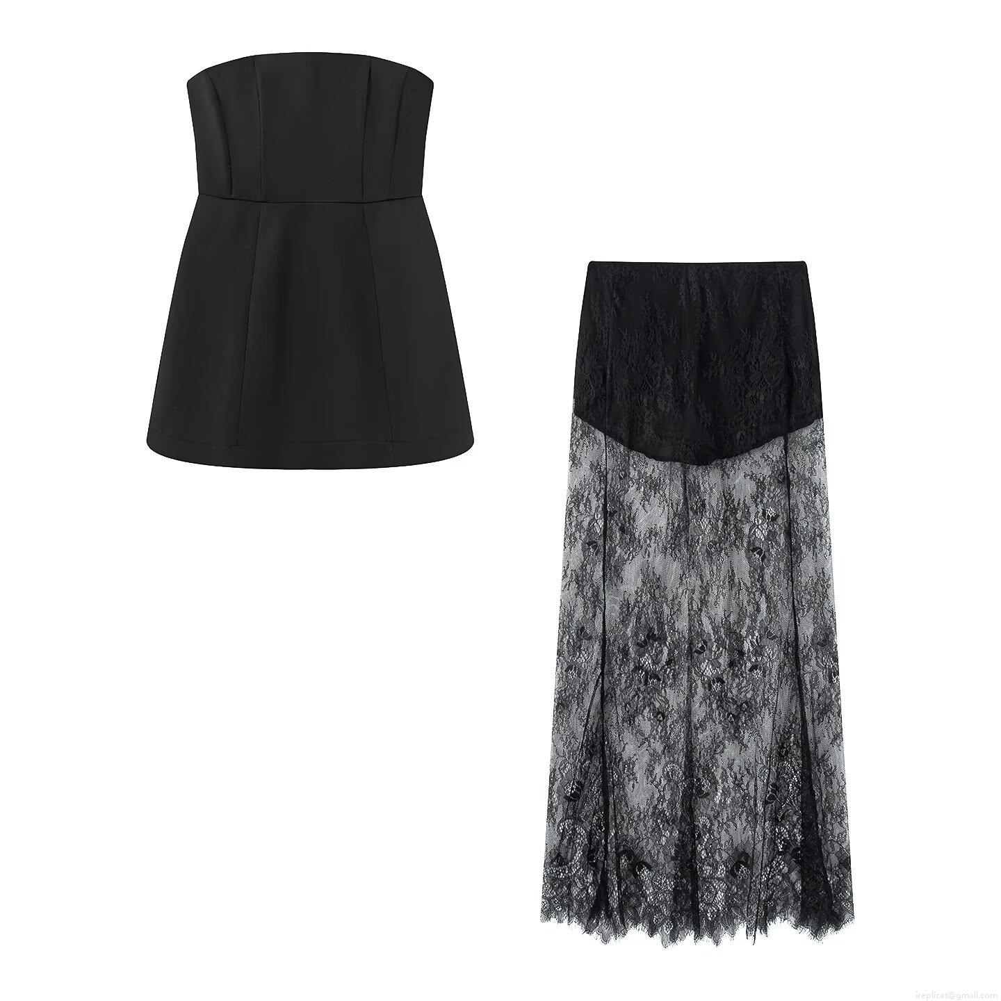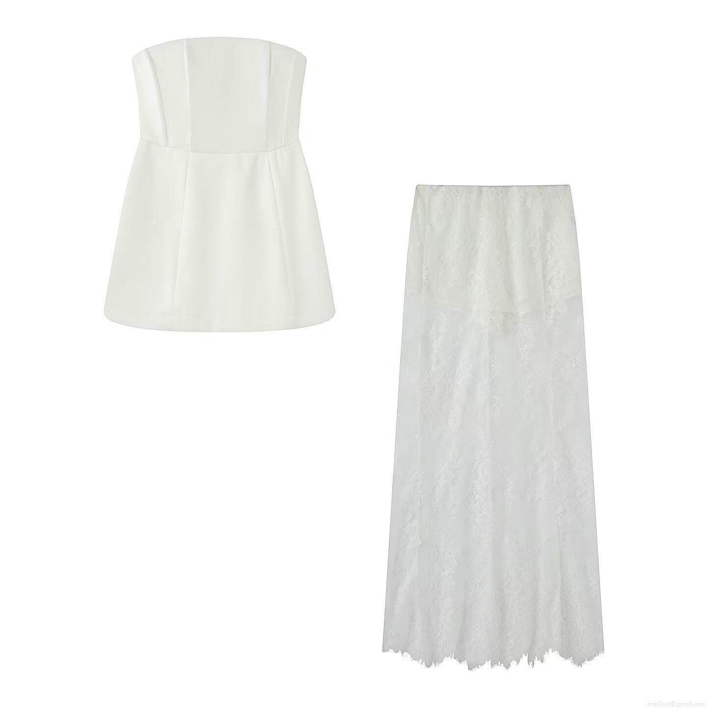 • Women's 2 Piece Skirt Set Sexy Bandeau Tube Top and Elegant High Waist Long Lace Splicing Skirt Outfits for Summer Party Vacation