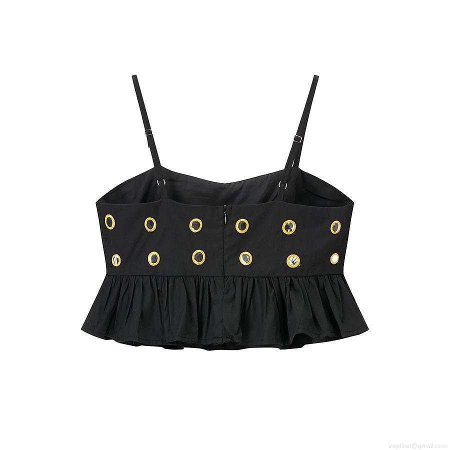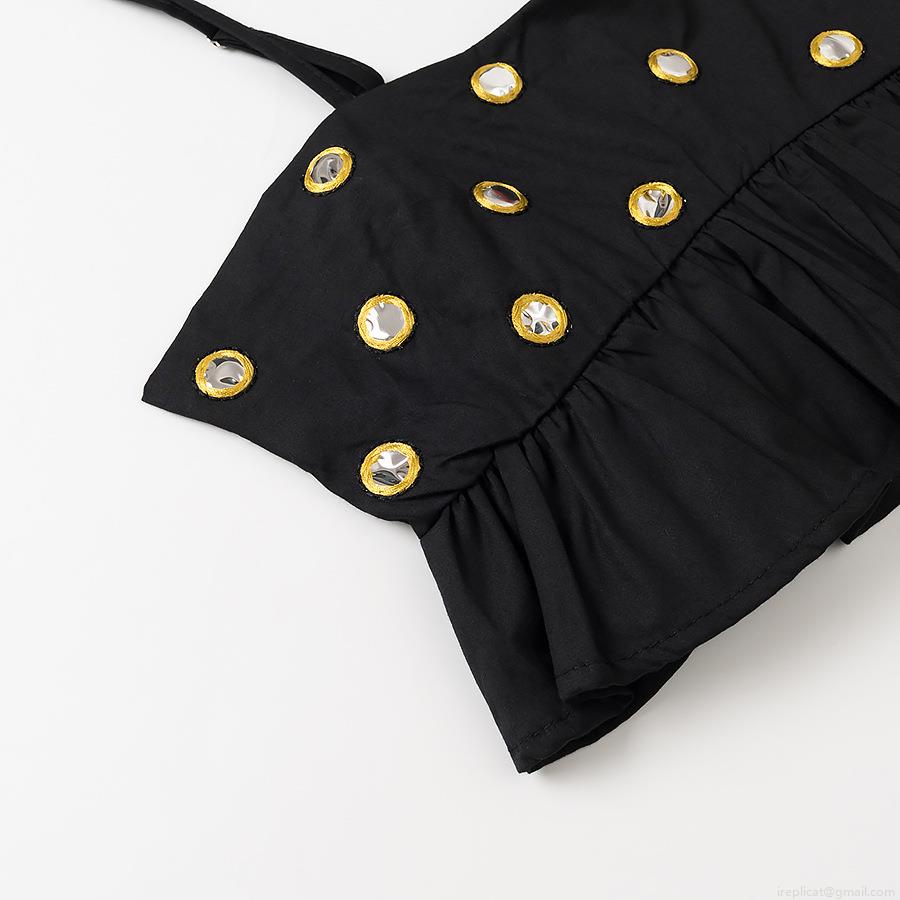 • Women's 2 Piece Skirt Set Sexy Hot Girl Style Ruffle Hem Crop Top And Mini Skirt Set With Gold Metal Grommet Mirror Decorations For Summer Party Clubwear