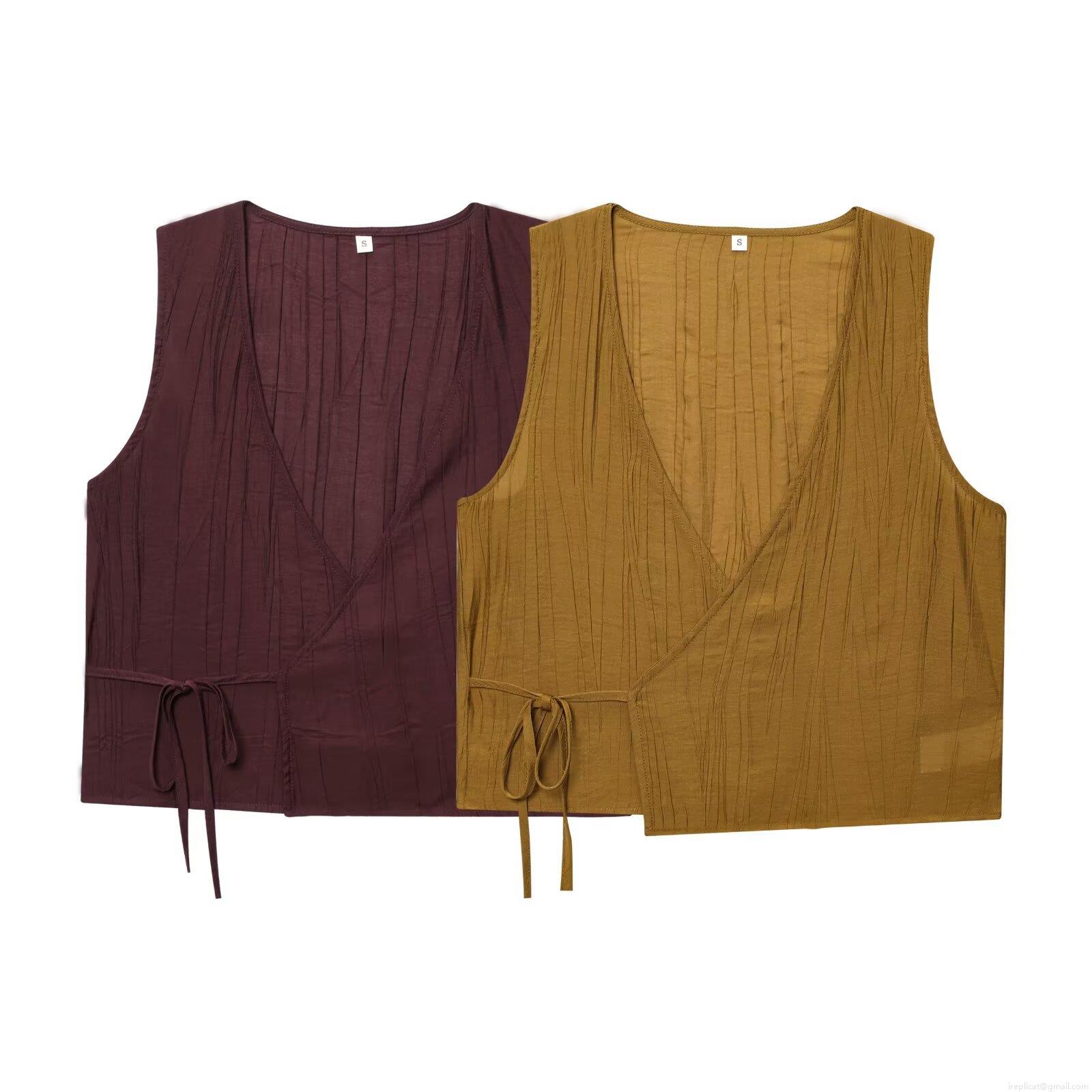 • Women's 2 Piece Skirt Set V Neck Sleeveless Wrap Top High Waist Midi Skirt Cotton Blend Crinkled Crepe Fabric Summer Casual Streetwear Outfits