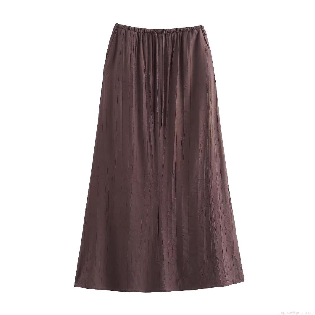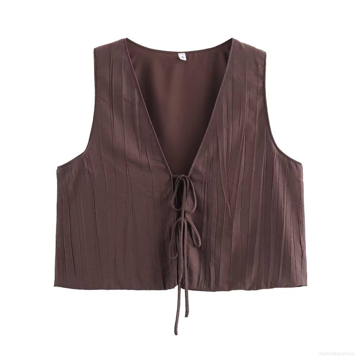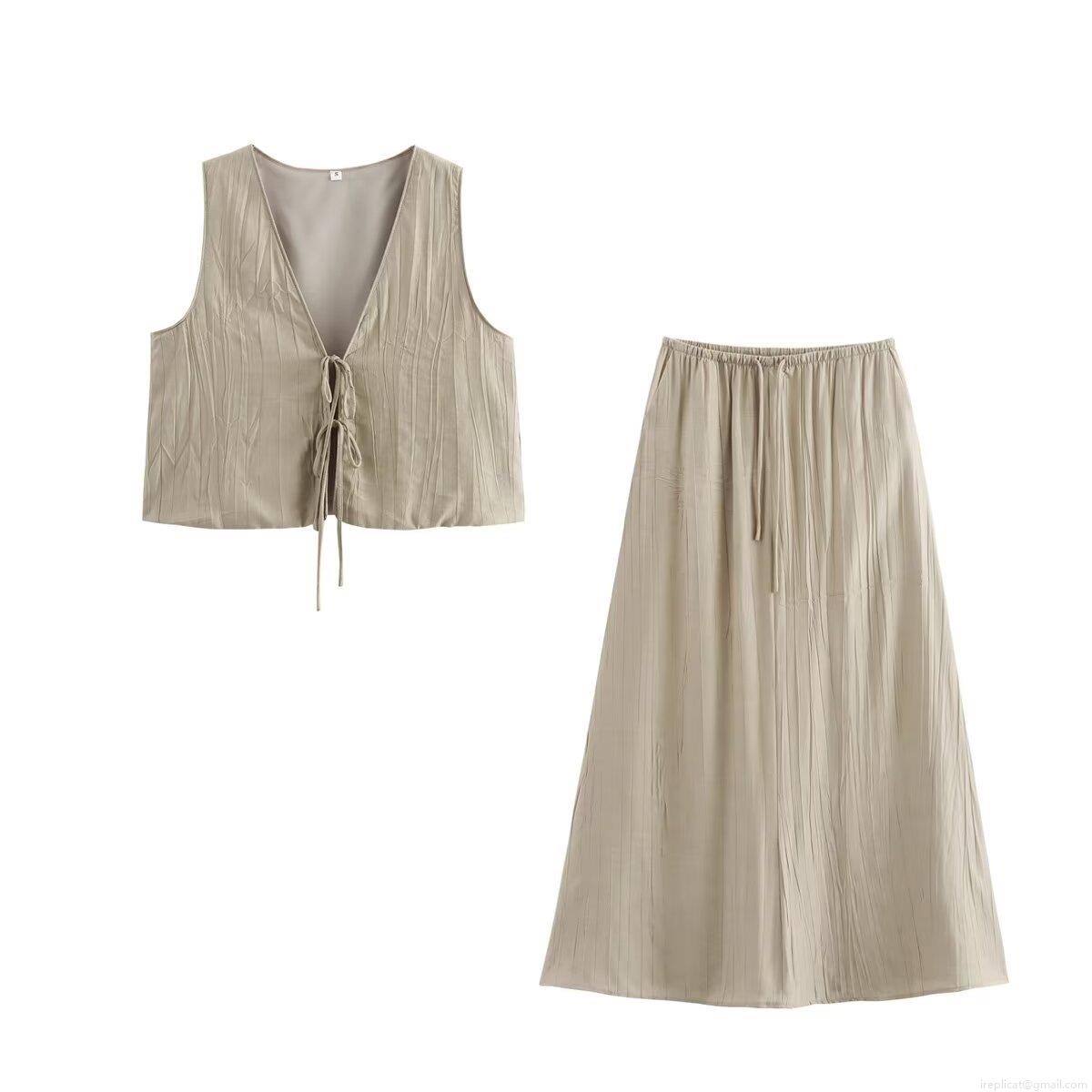 • Women's 2 Piece Skirt Sets Pleated Sleeveless V Neck Tie Front Vest Top And High Waist Drawstring Long Skirt Casual Streetwear Outfits Set