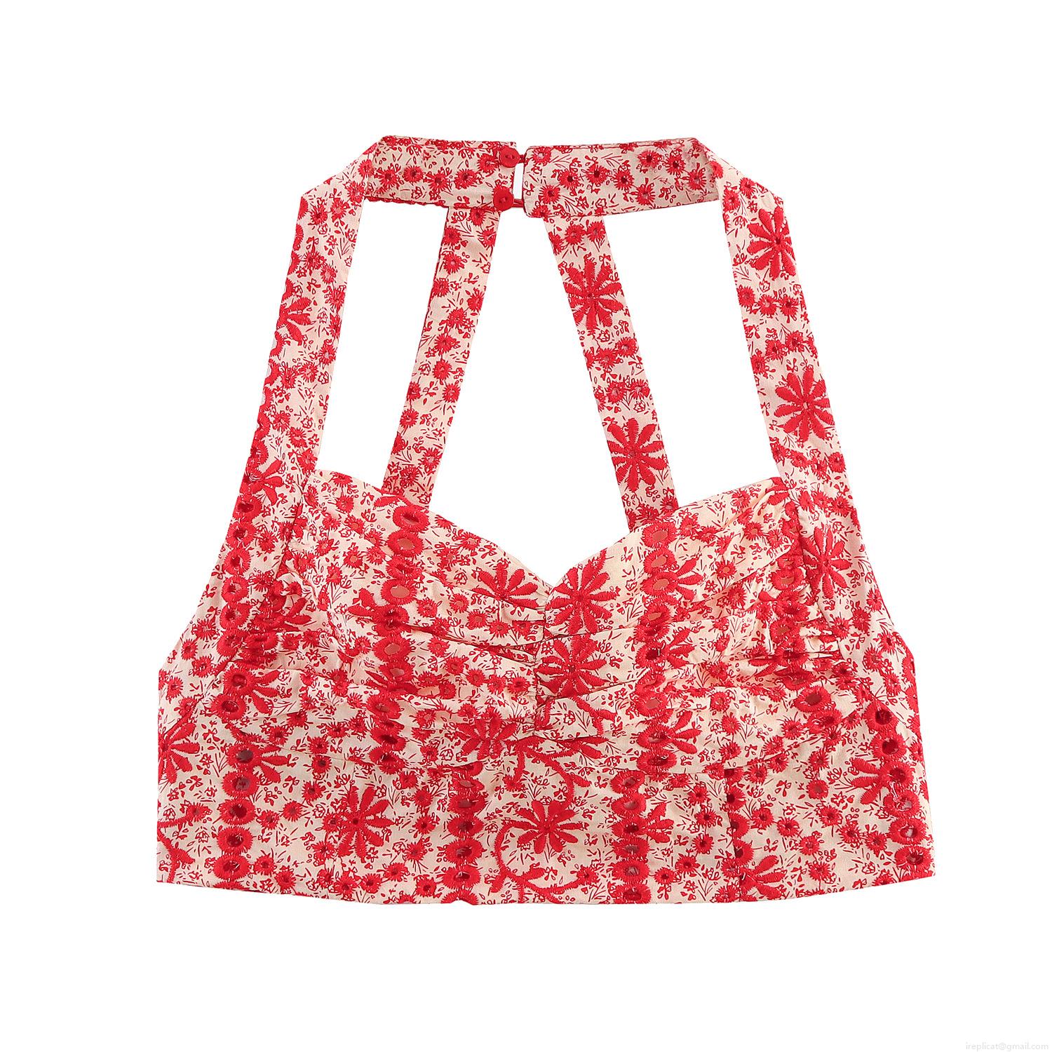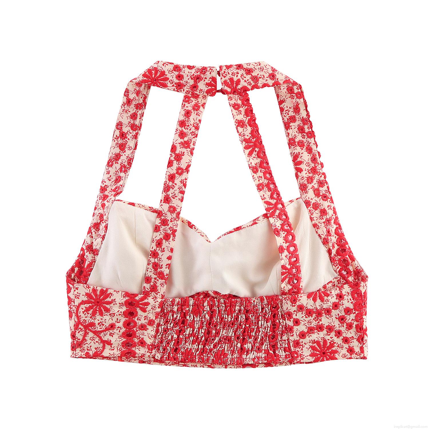 Embroidery, Floral Pattern, Hollow Out, Ruffles, Flowers, Neckband, Backless, Tightening
