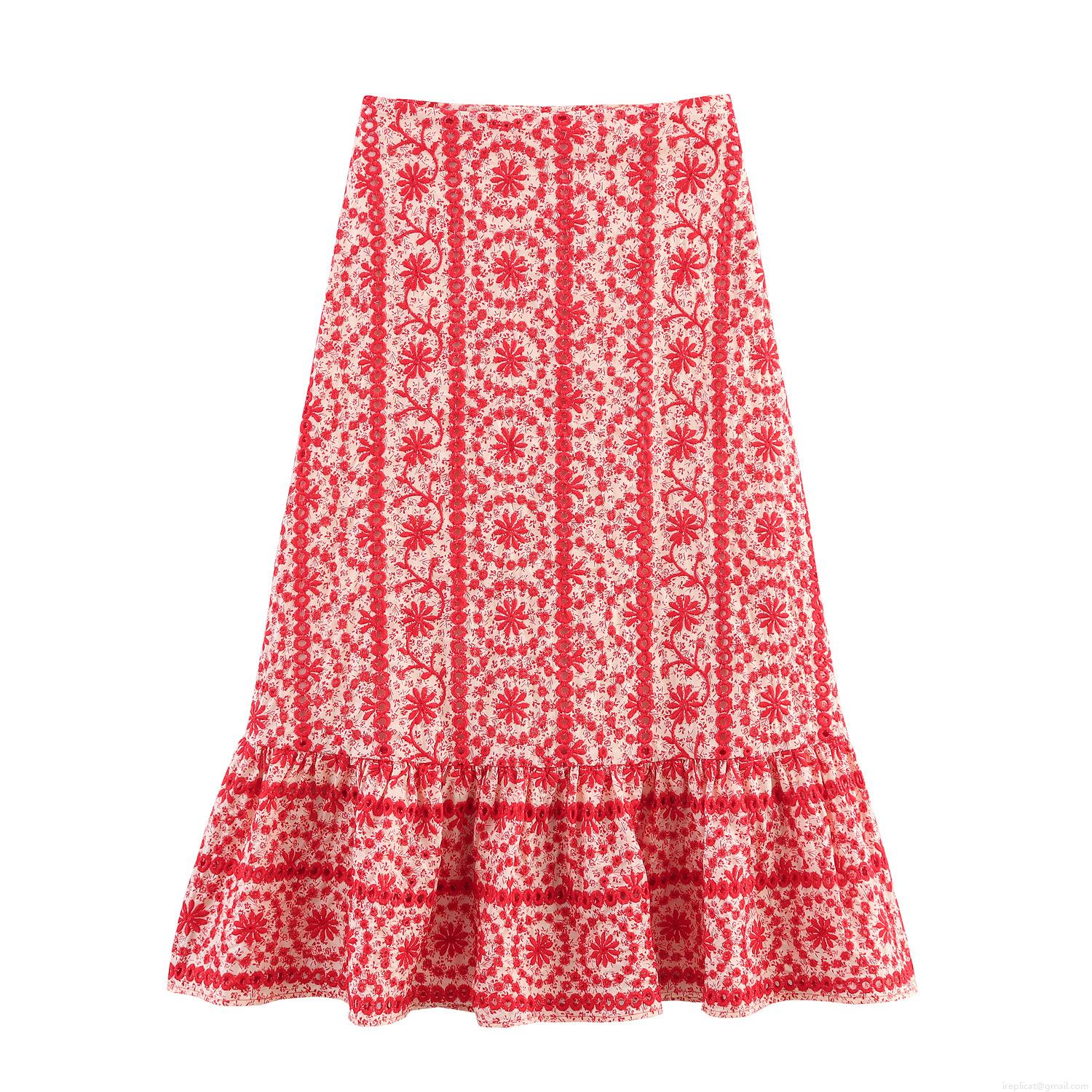 • Women's 2 Piece Summer Boho Set Cotton Floral Embroidery Halter Crop Top and Eyelet Ruffle Midi Skirt Vacation Beach Outfits