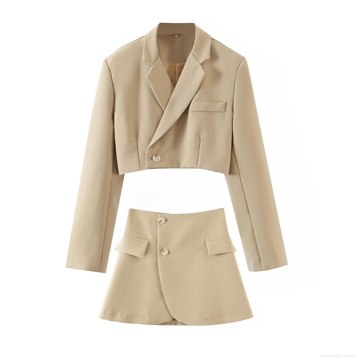 • Women's 2-Piece Blazer Skirt Set Cropped Notched Lapel Jacket And High Waist Asymmetric Mini Skirt Solid Color Twill Streetwear Outfit For Ladies