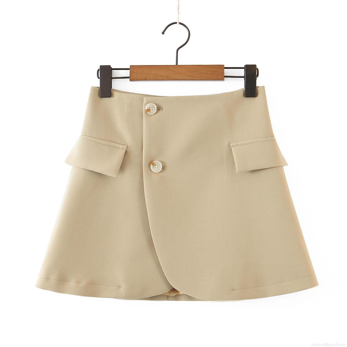 Solid Color, Button Decoration, Flap Pocket, Short Cut, Asymmetrical Cut