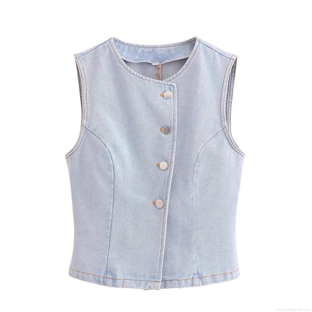 Women's 2-Piece Denim Set Light Blue Washed Polyester Vest And Front Slit Midi Skirt Streetwear Casual Sleeveless Top High Waist Denim Skirt Outfit For Summer Spring