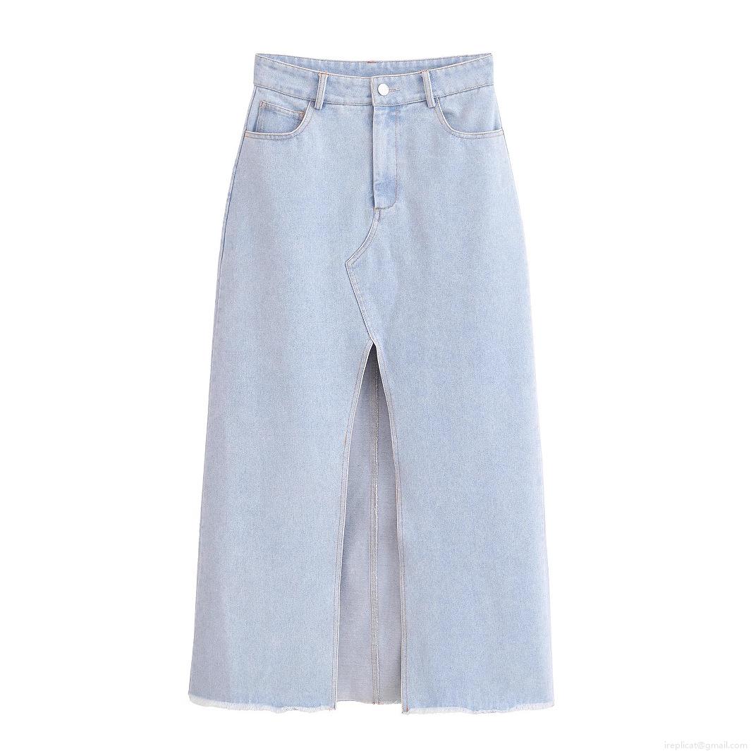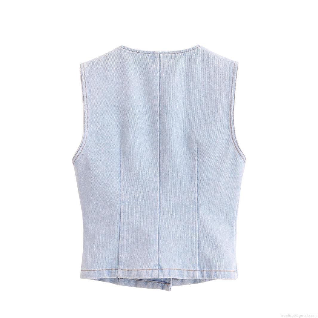 • Women's 2-Piece Denim Set Light Blue Washed Polyester Vest And Front Slit Midi Skirt Streetwear Casual Sleeveless Top High Waist Denim Skirt Outfit For Summer Spring