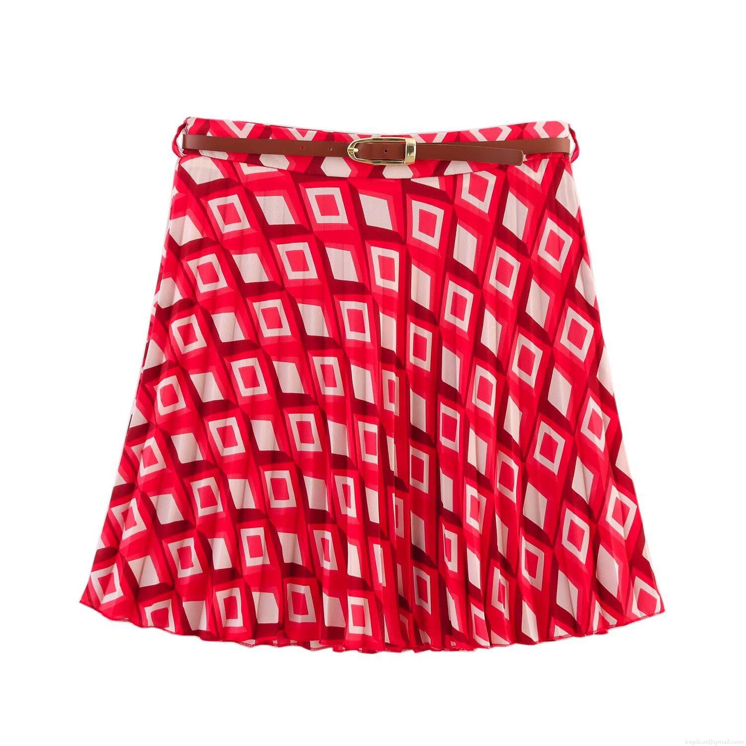• Women's 2-Piece Fashion Set Geometric Print Long Sleeve Shirt And Pleated Mini Skirt With Belt Casual Streetwear Outfits For Summer Party