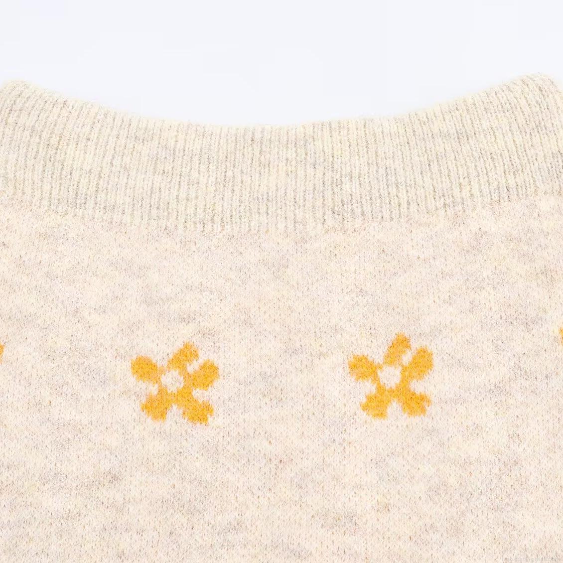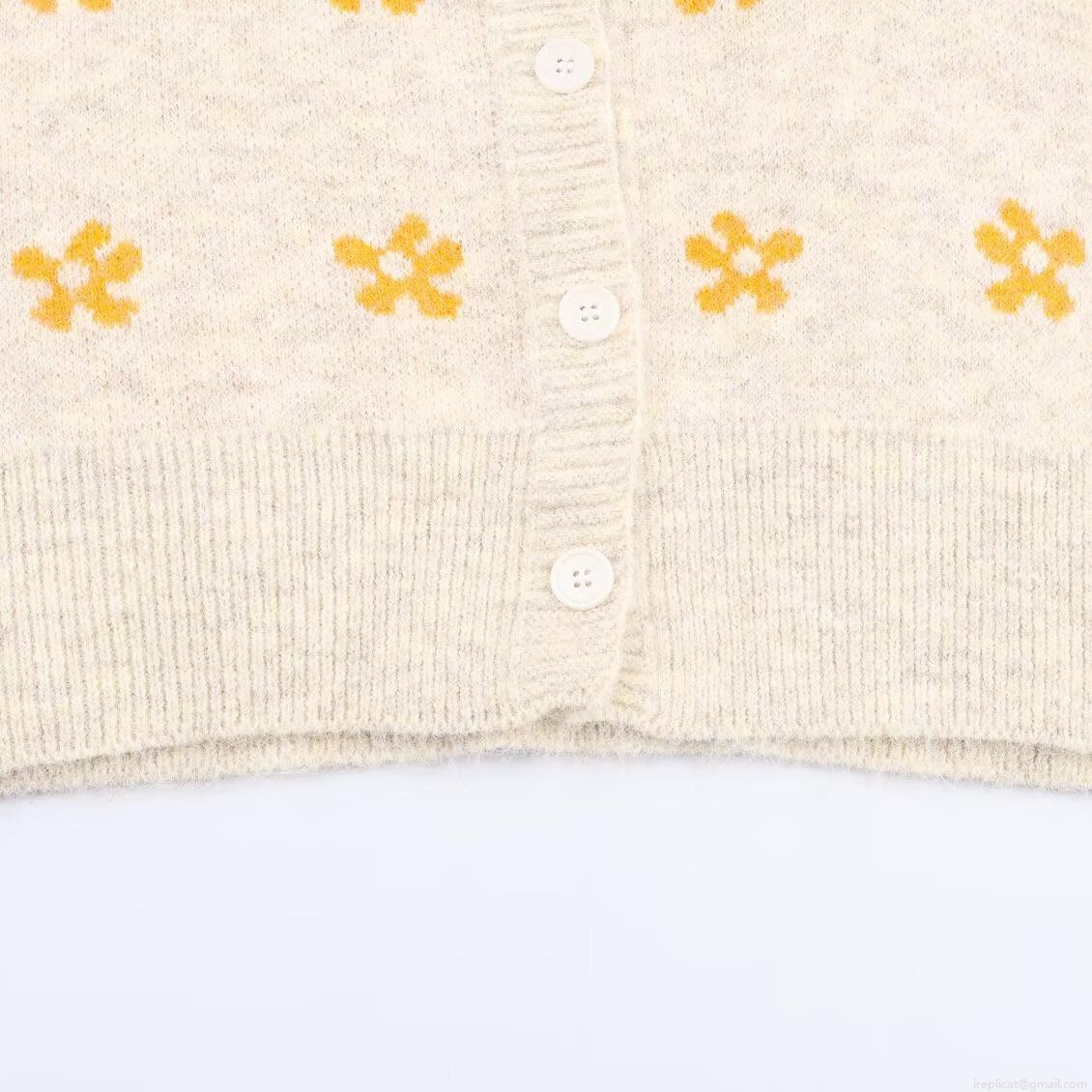 Women's 2-Piece Knit Skirt Set 100% Polyester Jacquard Flower Long Sleeve Button Down Cardigan And Mini Skirt Sweet Casual Outfit For Women