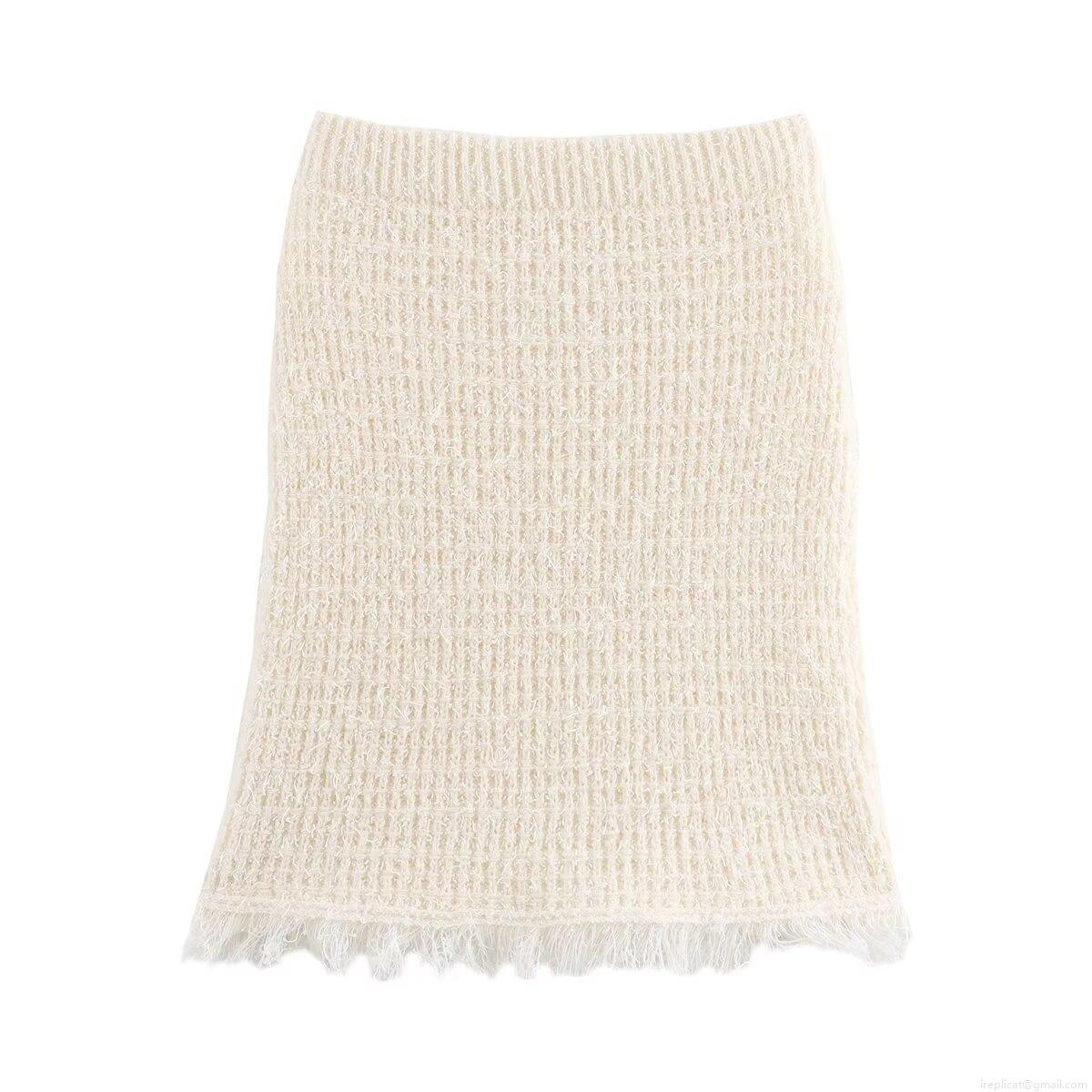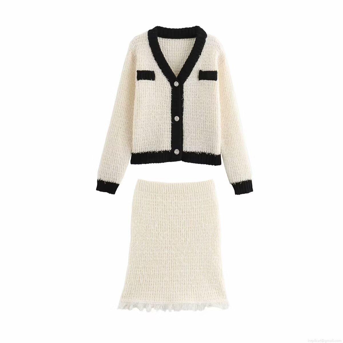 • Women's 2-Piece Knit Skirt Set V-Neck Tweed Style Cardigan And Mini Skirt With Tassel Trim Contrast Color Button-Up Long Sleeve Knitwear Outfit For Autumn Winter Party Club Lady Casual Streetwear