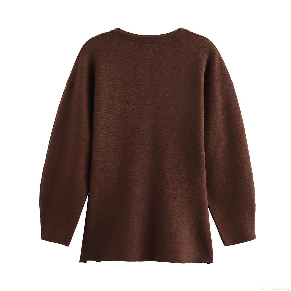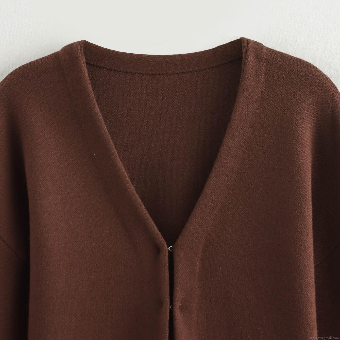 Solid Color, V-neck, Knitted Texture, Concealed Snap Design