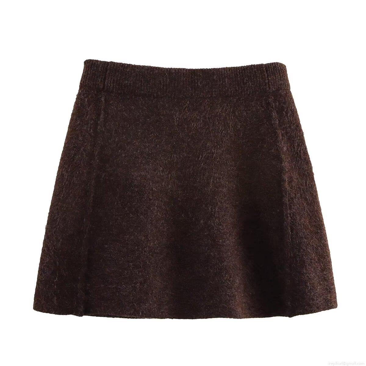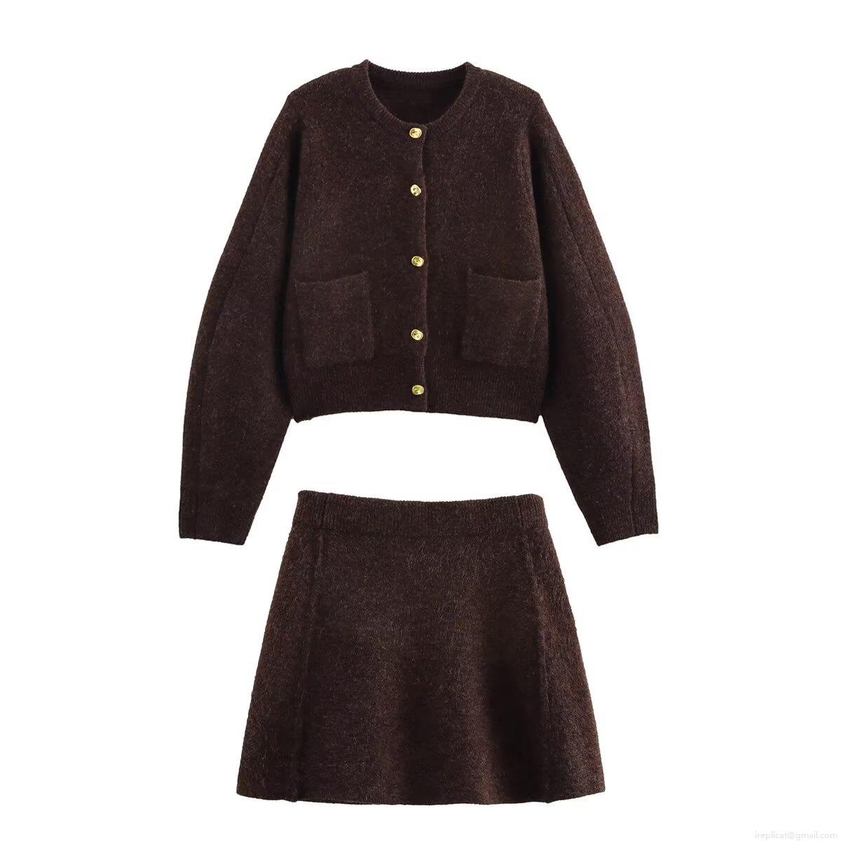 • Women's 2-Piece Knitted Skirt Set Button Down Plush Cardigan And A-Line Mini Skirt Streetwear Casual Brown Outfit For Women