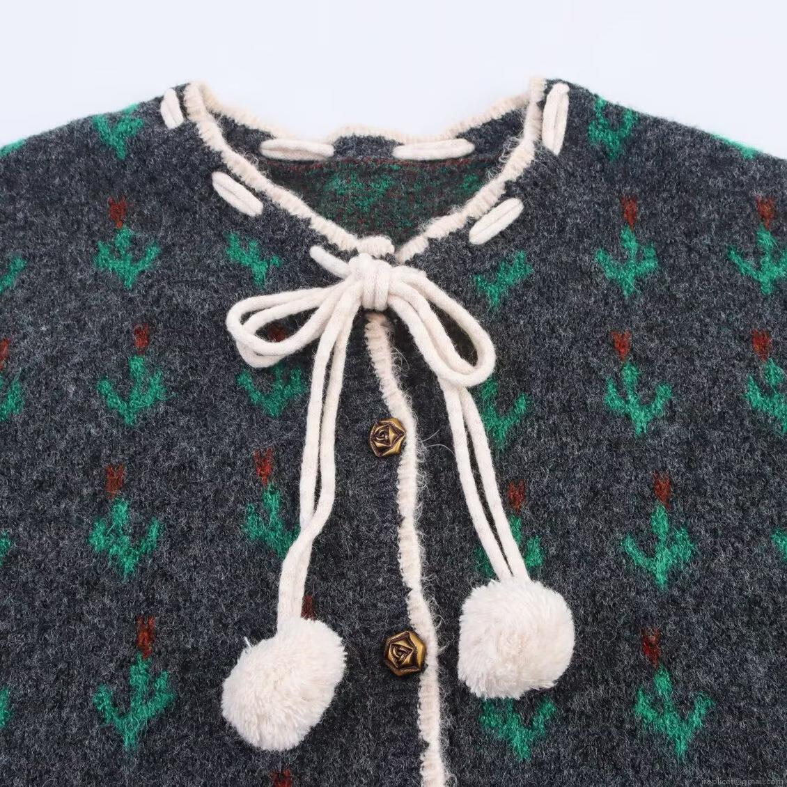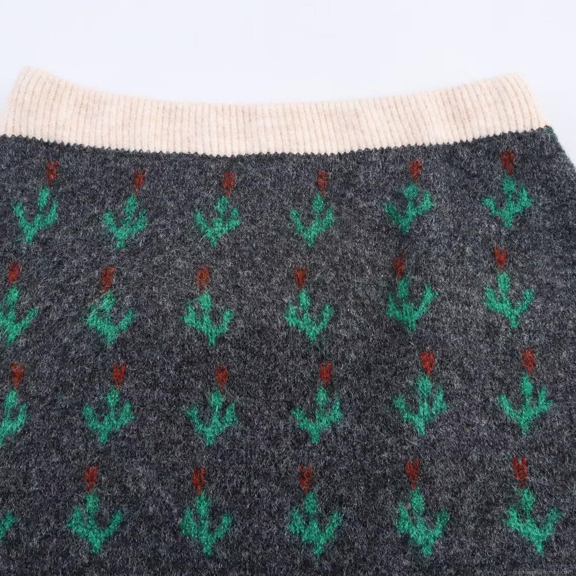 • Women's 2-Piece Knitted Skirt Set Cactus Jacquard Long Sleeve Cardigan And Midi Skirt For Daily Casual Dating Sweet Fashion Style With Rose Buttons