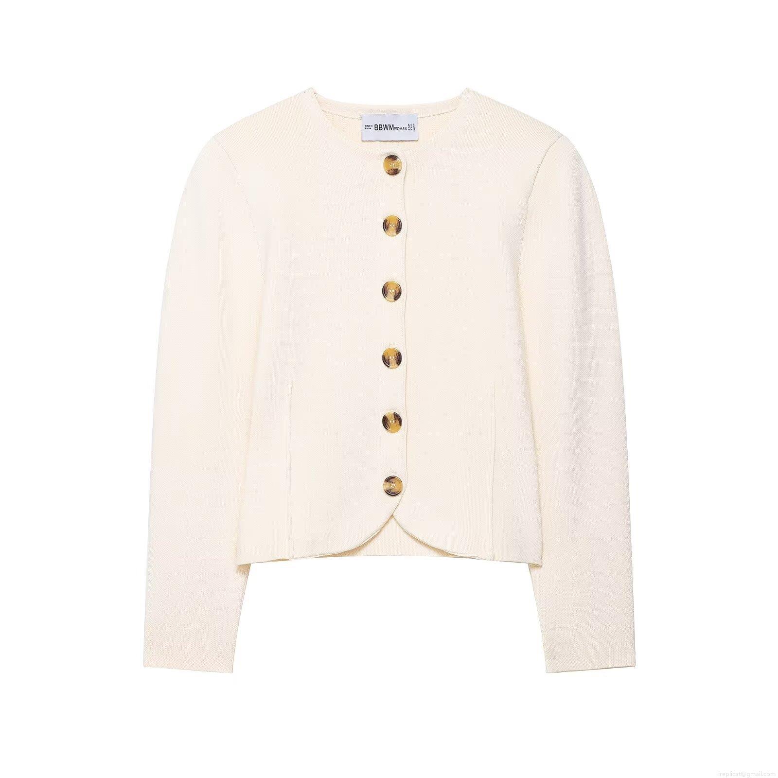 Solid Color, Splice, Knitted Texture, Tortoiseshell Buttons
