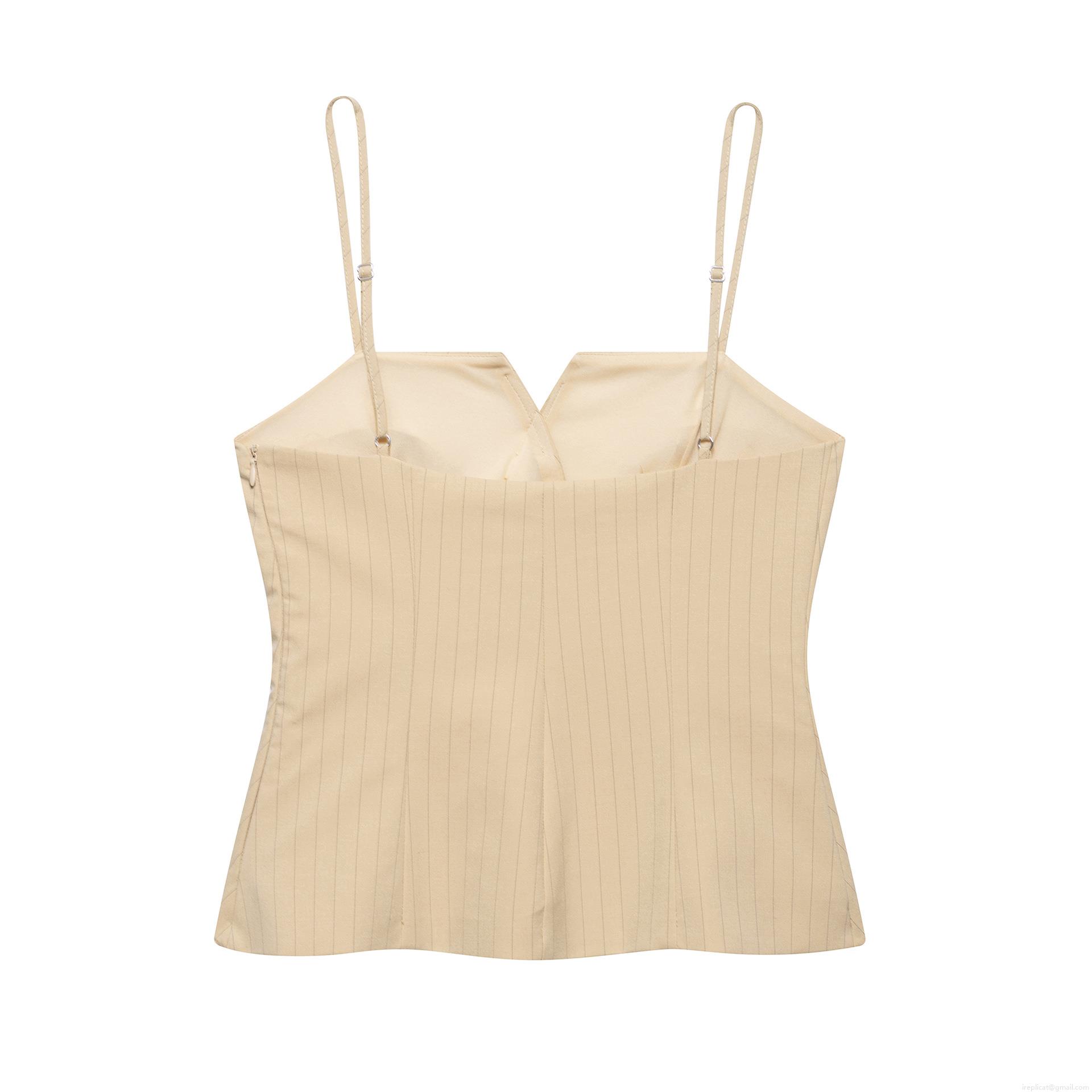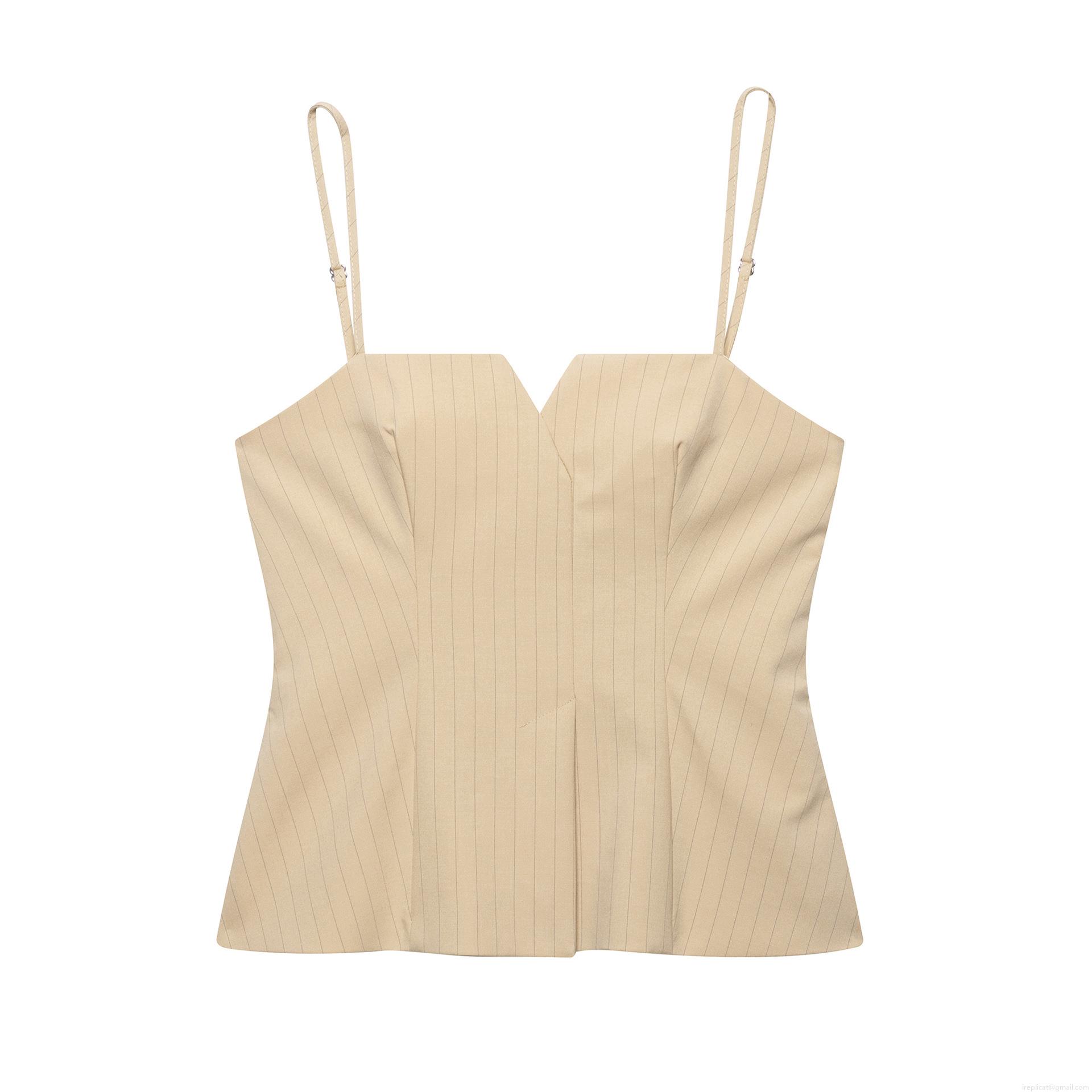 Pinstripes, Wrinkling, Vertical Stripes, Thin Shoulder Straps, Invisible Zipper, V-neck Cut