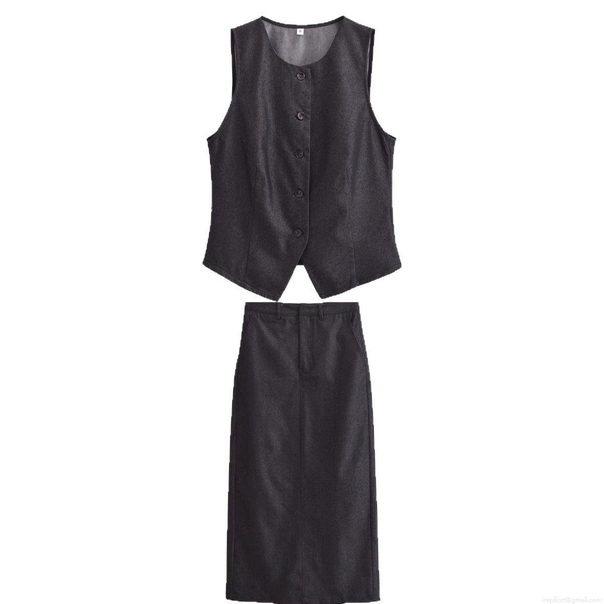 • Women's 2-Piece Skirt Set Slim Fit V-Neck Single Breasted Vest And Midi Straight Skirt Denim Texture Polyester Suit Streetwear Outfits