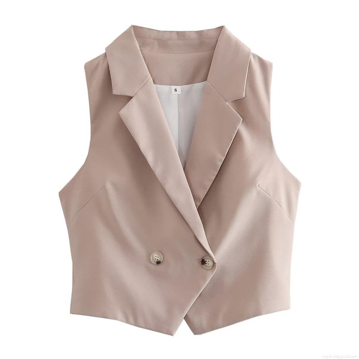 Solid Color, Pleats, Double-breasted, Suit Collar, Sleeveless Design