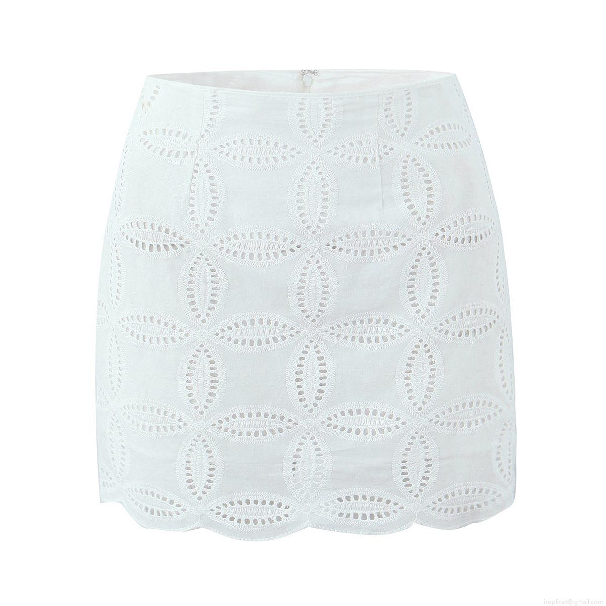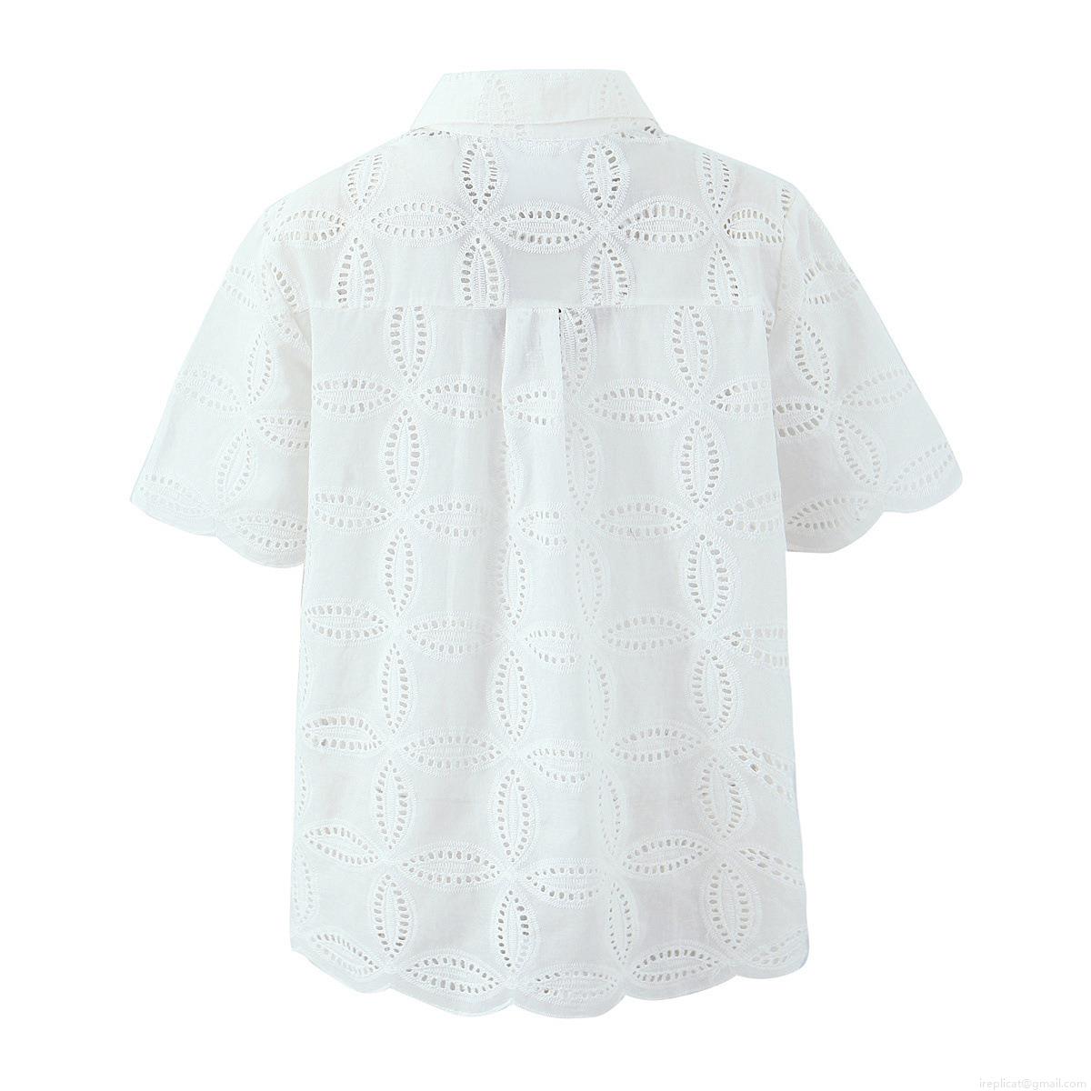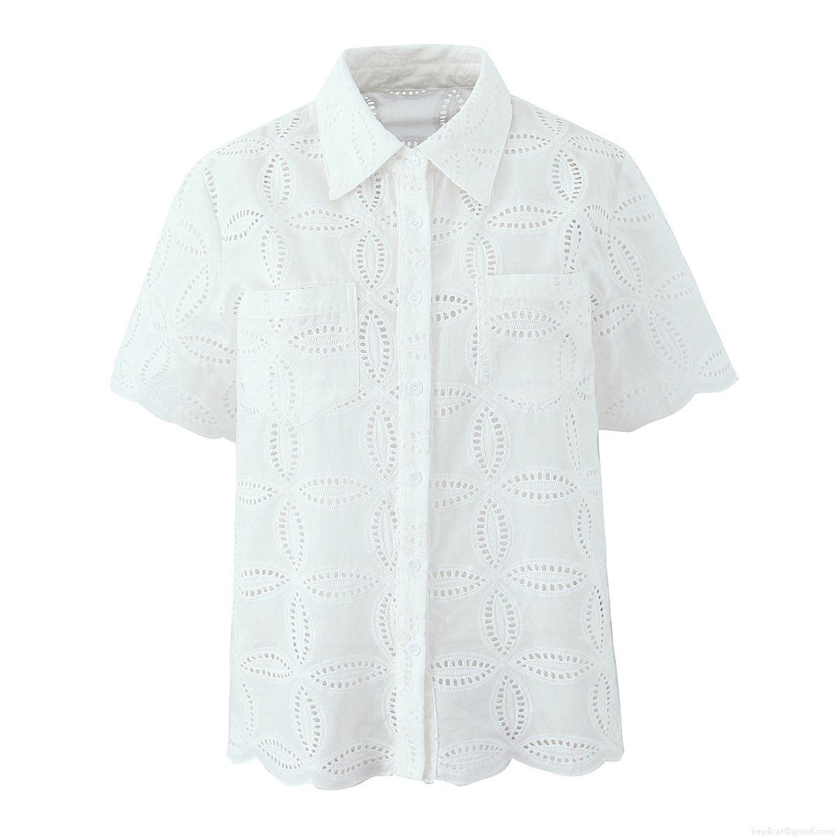 Solid Color, Lace, Embroidery, Hollow Out, Single-breasted, Wavy Edge, Openwork Flowers